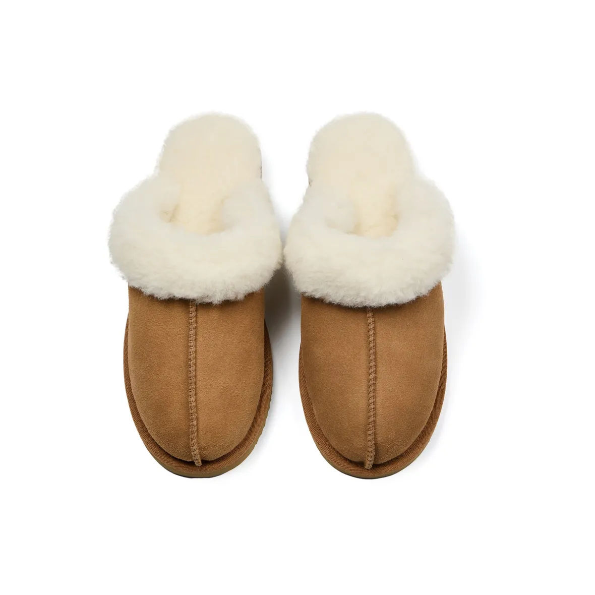 PREMIUM WATER-RESISTANT SUEDE: The water-resistant suede upper, combined with a 100% genuine wool lining, offers ultimate warmth and comfort, making these the perfect warm slippers for women.