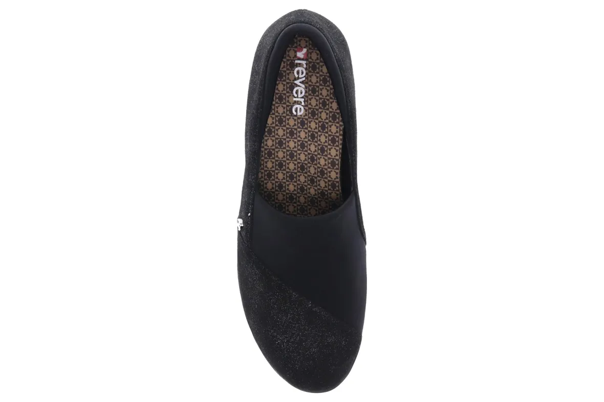 Comfort has never looked cooler than the RevereNaples, a mixed material loafer with ultra modern sensibility. Super soft interest leather uppers contrast with stretch panels across the forefoot makeNaples one of our best-selling bunion shoes. Removeable comfort contoured footbed provides proper foot alignment over the arch support for added stability.