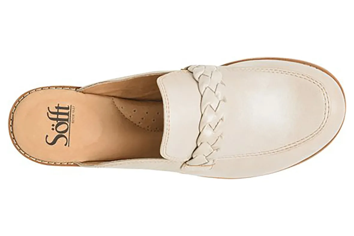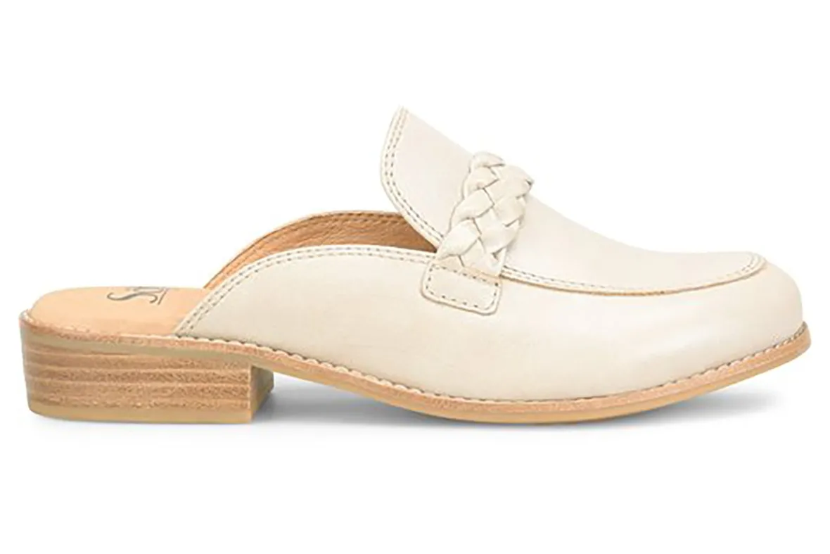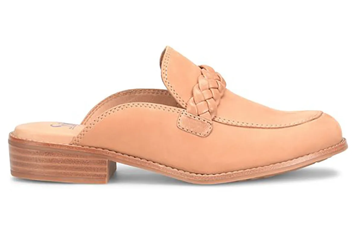 Sofft Nels is a comfortable and versatile mule loafer. Prominent features include Italian leather and nubuck uppers, cushioned footbed and flexible TPR outsole. A braided leather accent adds a stylish touch, while a 1 ¼ inch stacked heel height elevates these warm weather shoes.