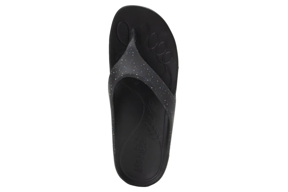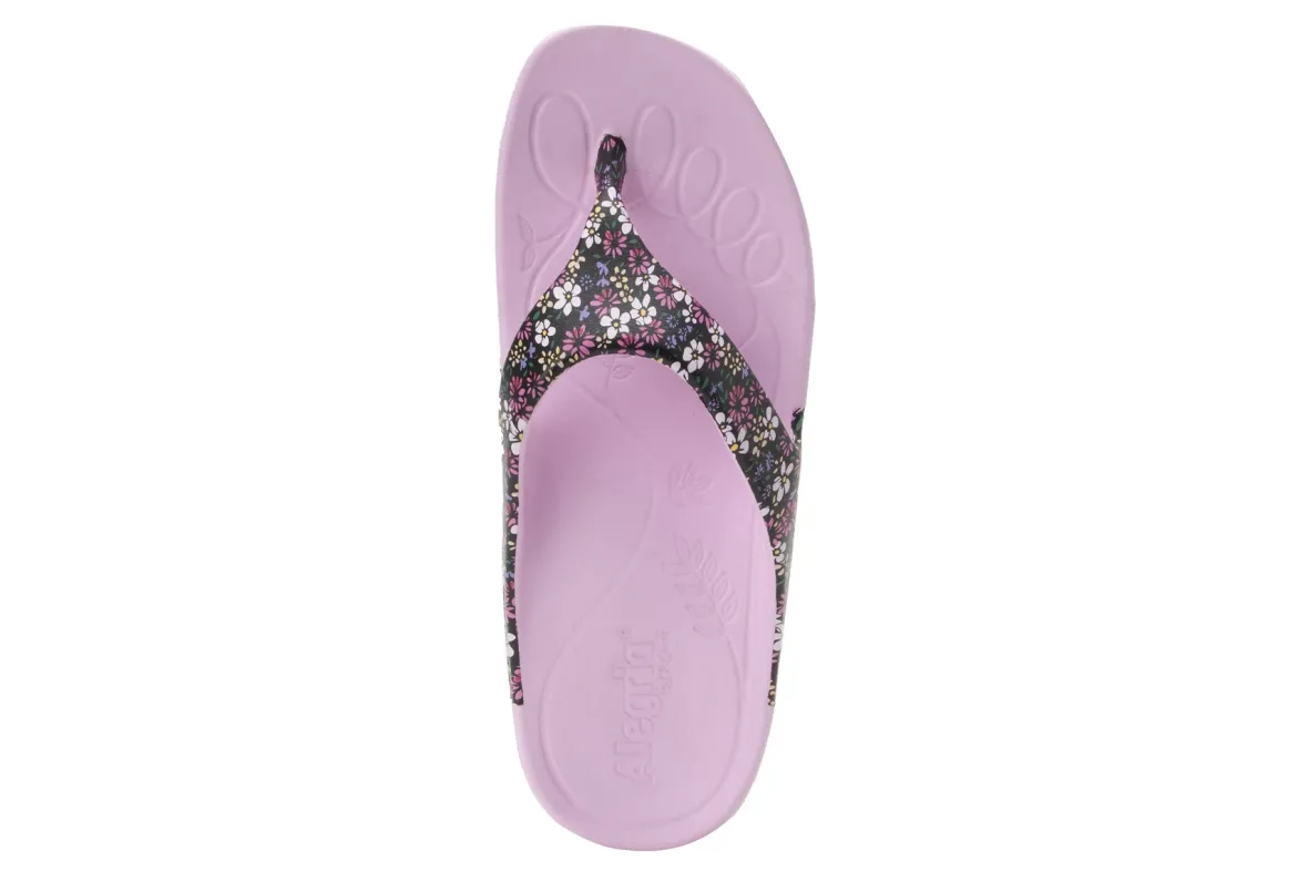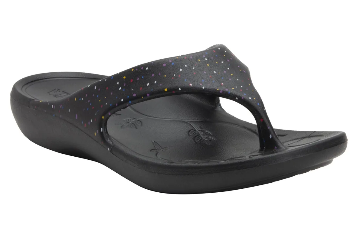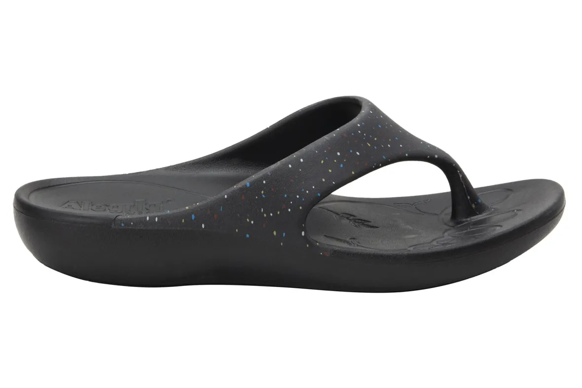 Alegria Ode is a toe post sandal for warm weather days. These recovery sandals have a one-piece EVA construction, built-in molded arch support and EVA outsole. A contoured footbed adds comfort, while a rocker outsole helps to relieve tension.