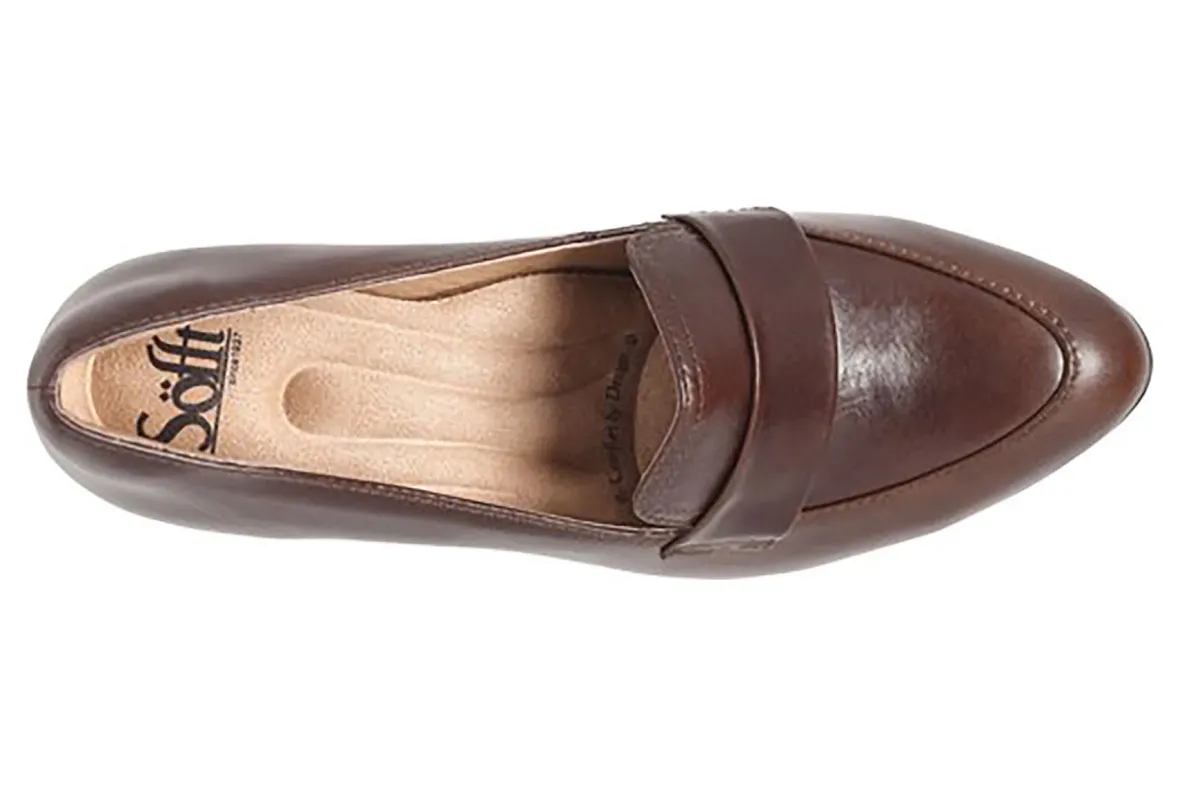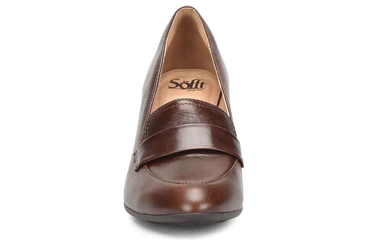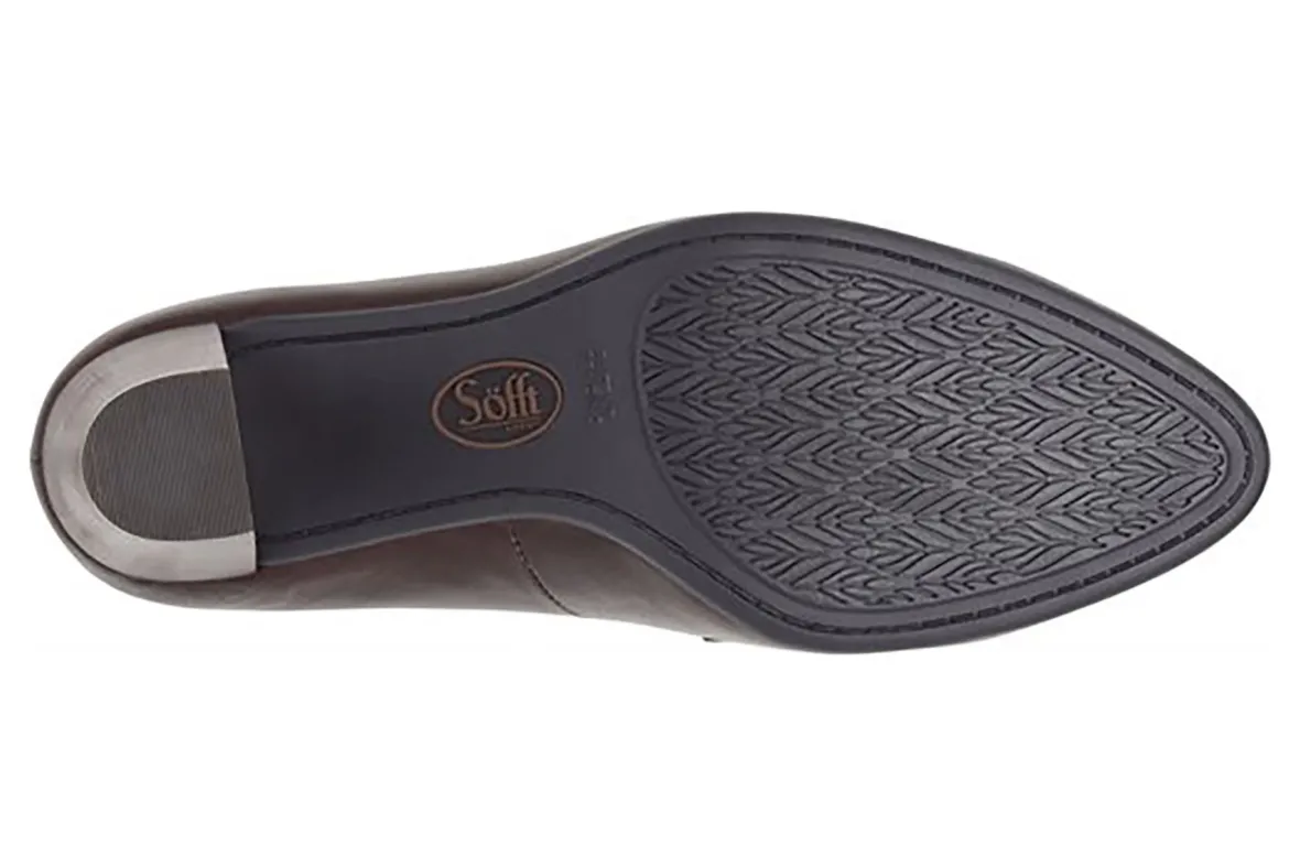 Sofft Parkdale is an upscale loafer pump. These trendy shoes have leather or suede uppers, padded heel collar, leather lining and flexible TPR outsole. A cushioned footbed, pointed toe and 3-inch polished or stacked heel helps these pumps stand out.