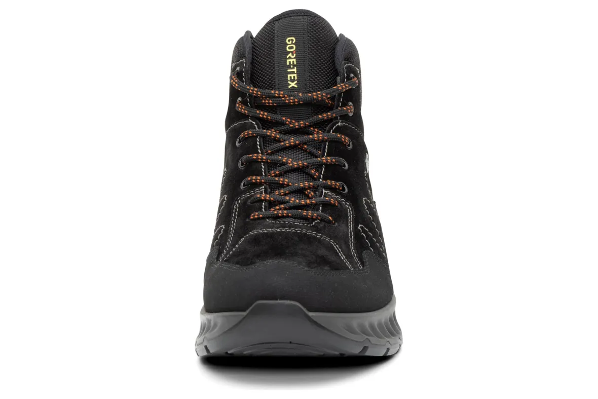 This sporty trekking shoe is exactly the right choice for all nature lovers and leisure activities.The shoe is made of robust nubuck leather and is also very light.Equipped with a Gore-Tex membrane, the shoe is waterproof and windproof, and a pleasant foot climate is guaranteed.Another advantage of these lace-ups is the loose insoles that can be easily removed.You can always replace them with your own deposits.