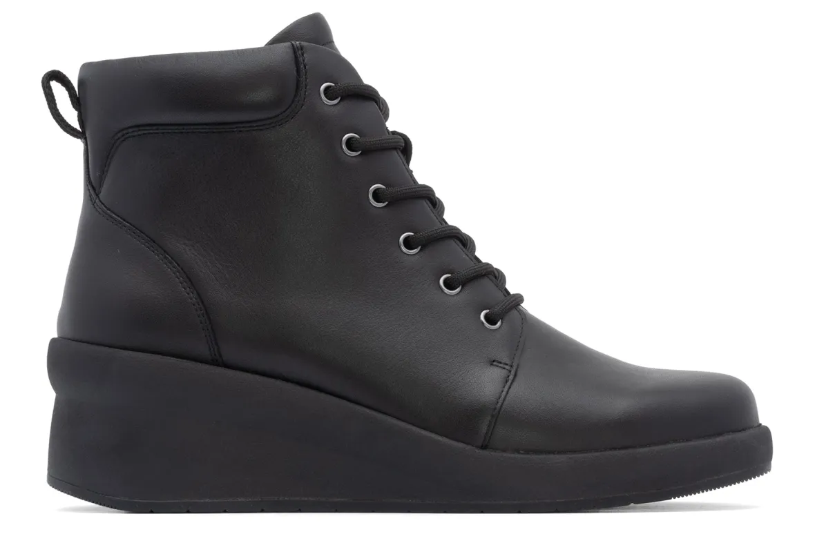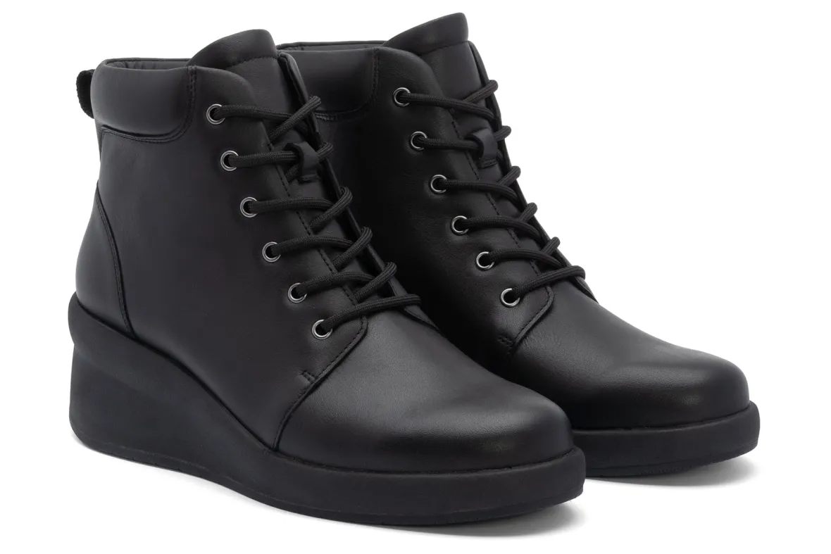 With water-resistant leather uppers and a flexible rubber outsole for added traction, the ABEO Passage Lace Up Boot Metatarsal is the perfect companion for your outdoor adventures. These lace up boots feature our exclusive BIOsystem® orthotic footbed, ensuring your feet are supported with each step. A low wedge heel adds a touch of sophistication that complements the rugged look of these women’s boots.