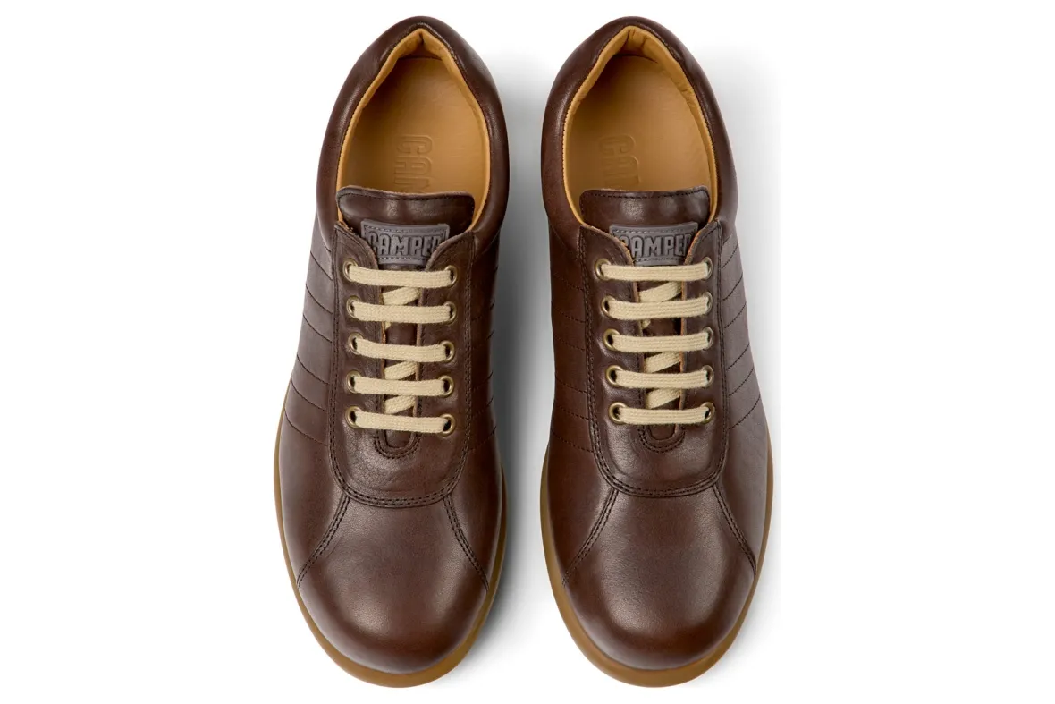 Camper Pelotas 16002 is a sturdy and reliable men’s shoe. These trendy sneakers have tanned calfskin uppers, removable footbed and stitched rubber outsole. A padded collar and tongue, lace-up construction and rubber sphere outsole will make these shoes a new favorite.