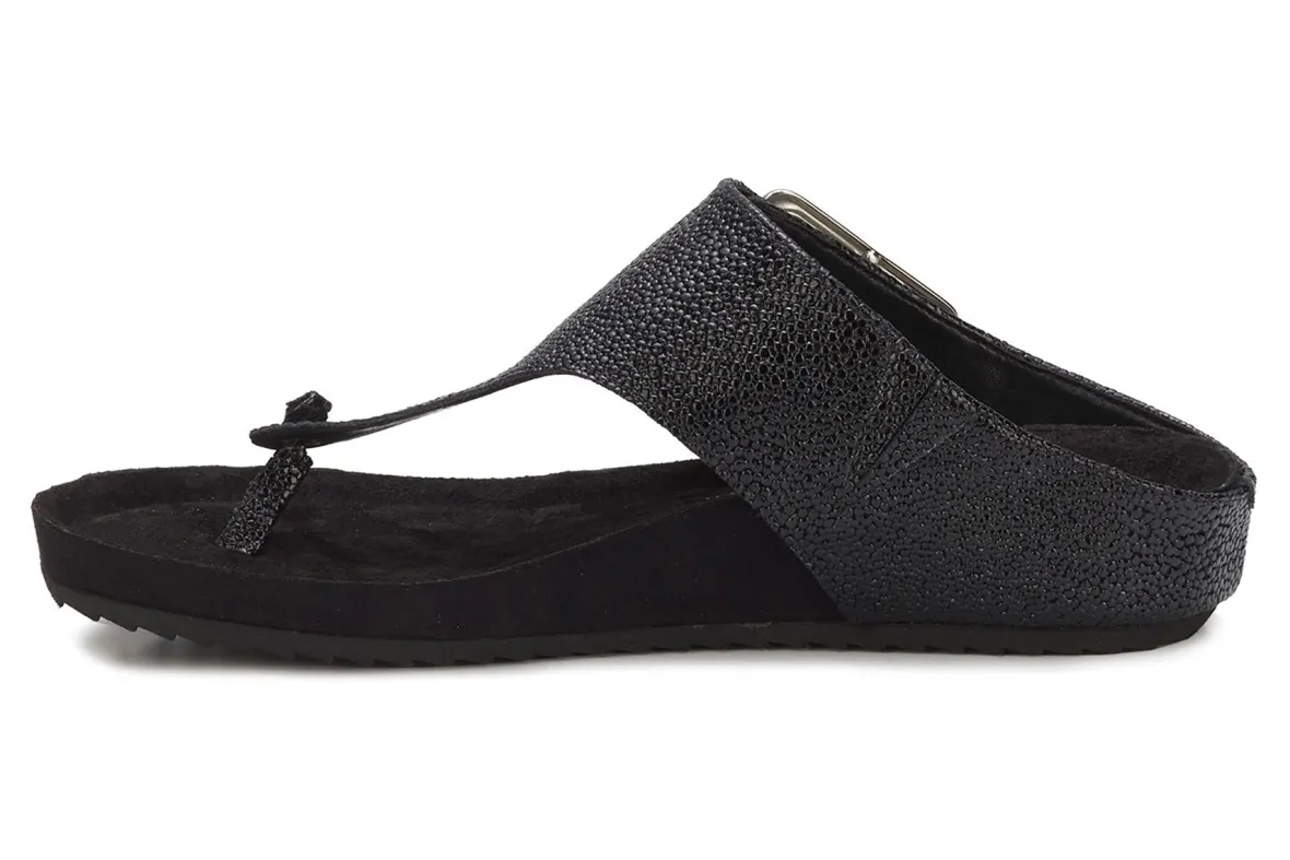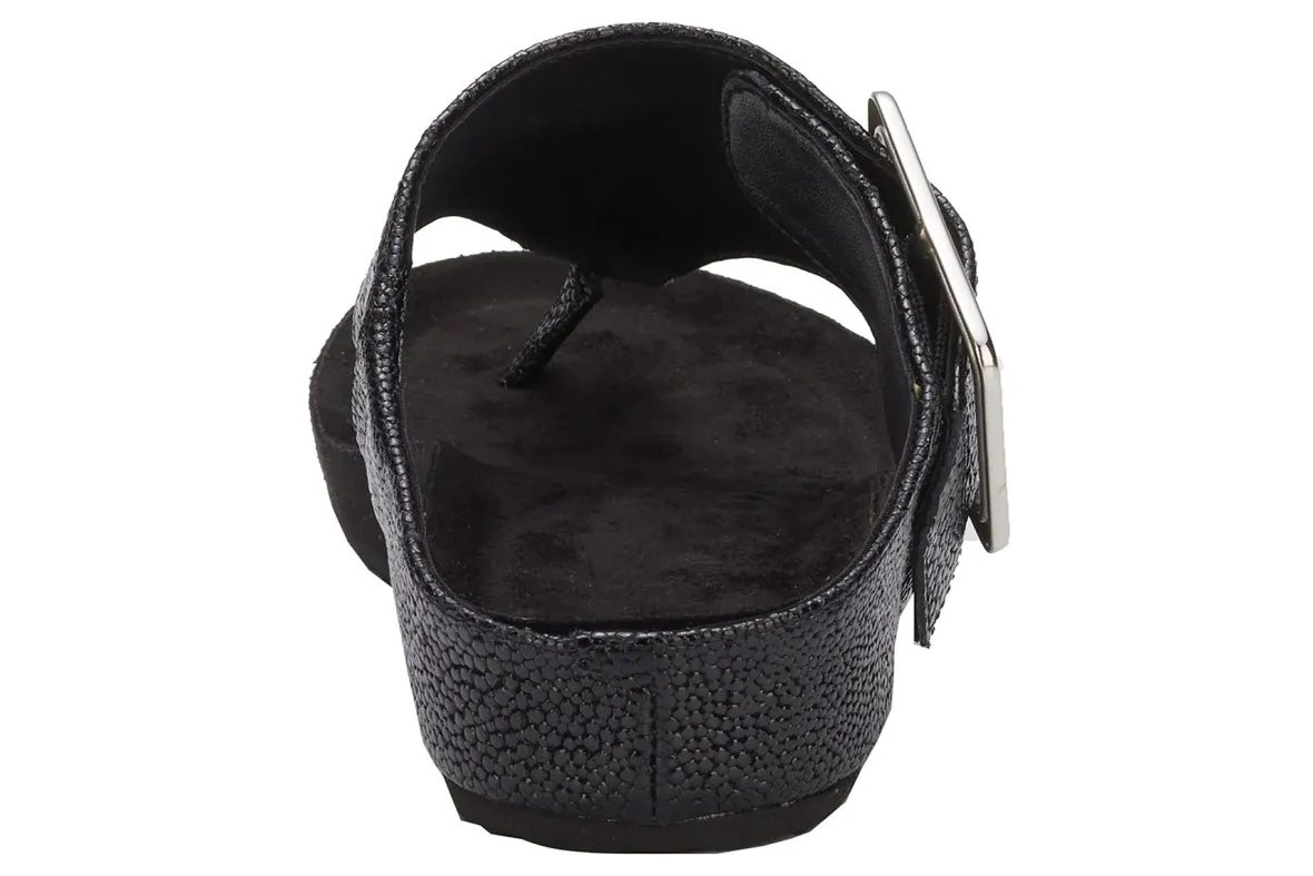Everyone loves a great footbed sandal, and Phoebe tops the charts! Ros updates the classic thong with a fashionable oversized adjustable buckle. This easy-going sandal not only provides modern styling, but also the unmatched comfort of our signature Tiny Pillows built right into the sueded microfiber footbed, providing cushioning not typically found in most footbed sandals.