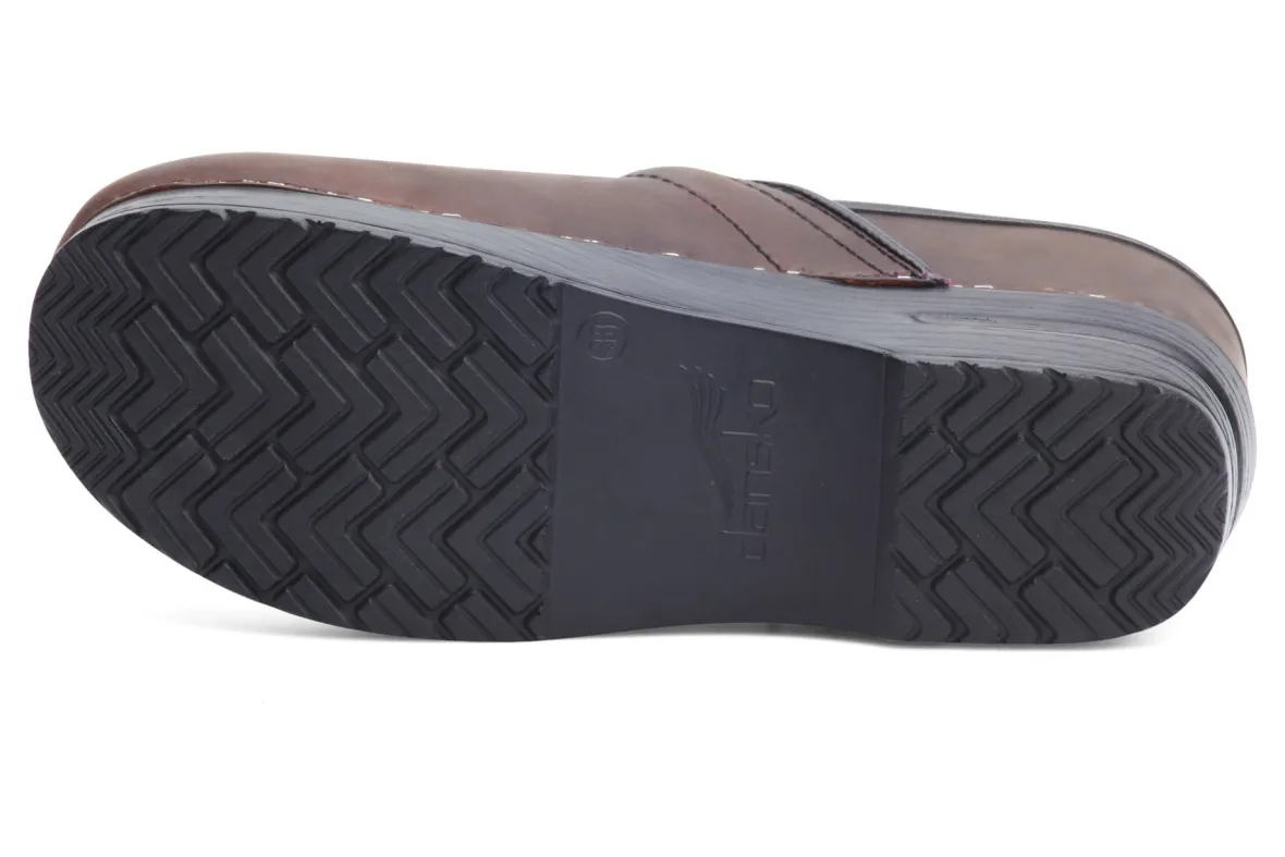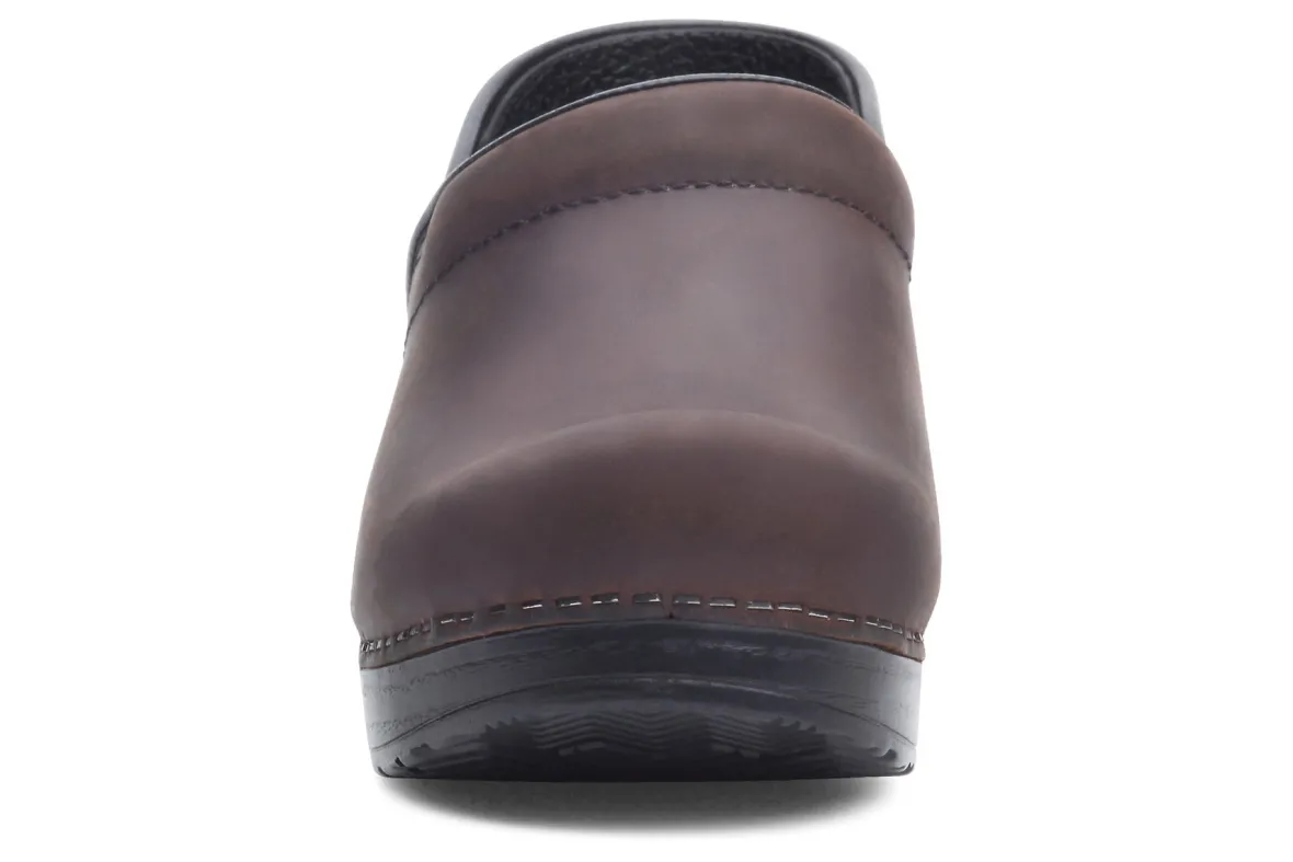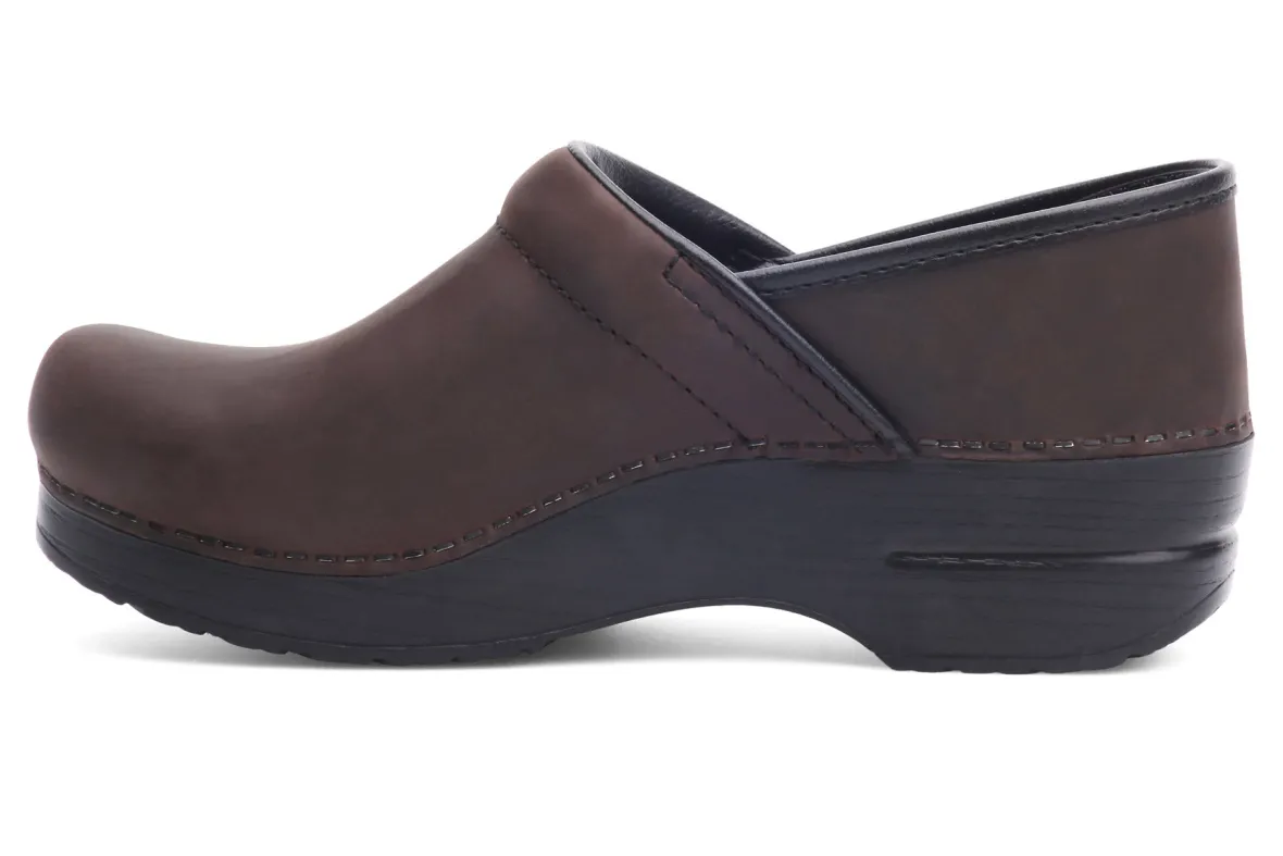 The Dansko Professional clog is Dansko’s iconic silhouette, theirflagship style. It features a roomy reinforced toe box for protection and comfort. The contoured footbed adds support to the comfort features like a padded instep collar to feel good with virtually any foot. We set ourselves apart with a protective heel counter that allows the heel to move up and down freely while providing lateral stability, and the anti-fatigue rocker bottom, which is built to keep you moving forward.UPPER:Various high-quality leathers. Padded instep collar.TOE BOX:Roomy, reinforced toe box allows toes to move comfortably with plenty of “wiggle room.”HEEL COUNTER:Allows heel to move up and down freely while providing lateral stability.SOCKLINING:Leather for breathability.FOOTBED:Single-density open-cell PU foam.INNER FRAME:Provides added stability throughout.OUTSOLE:PU rocker bottom promotes forward motion for shock absorption and energy return. Wide heel strike assists with stability.