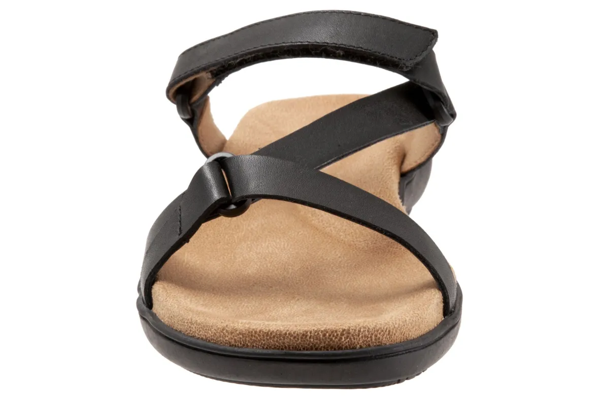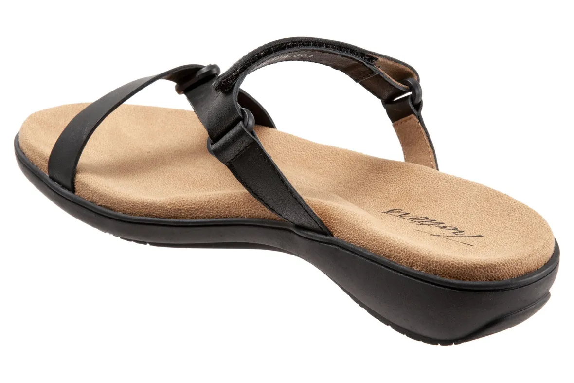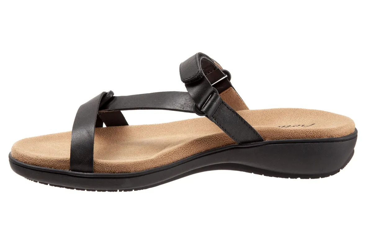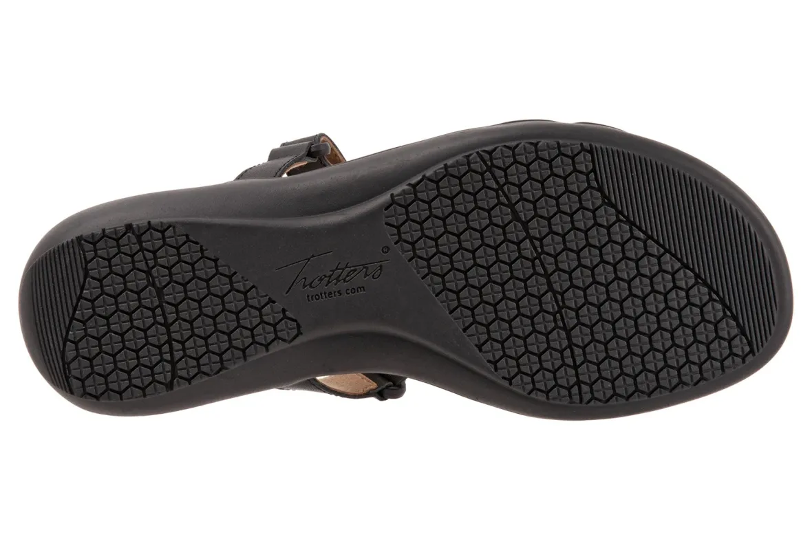 Trotters Raja is a classy and comfy slide sandal. These summer sandals have leather uppers, memory foam and EVA footbed and lightweight rubberized outsole. Adjustable hook and loop straps, soft microfiber footbed lining and 1 ¼ inch heel height makes this silhouette a warm weather favorite.