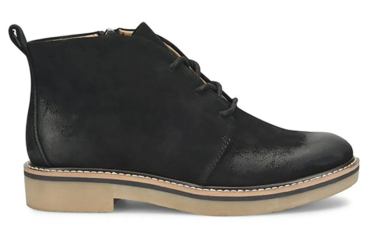 Comfortiva Rebeca is a modern update to the chukka boot. Features include Italian suede or floral print leather uppers, removable footbed and TPR outsole. A side zipper, heel tab, microfiber lining and 1 ¼ inch heel height makes these the perfect cold weather boots.