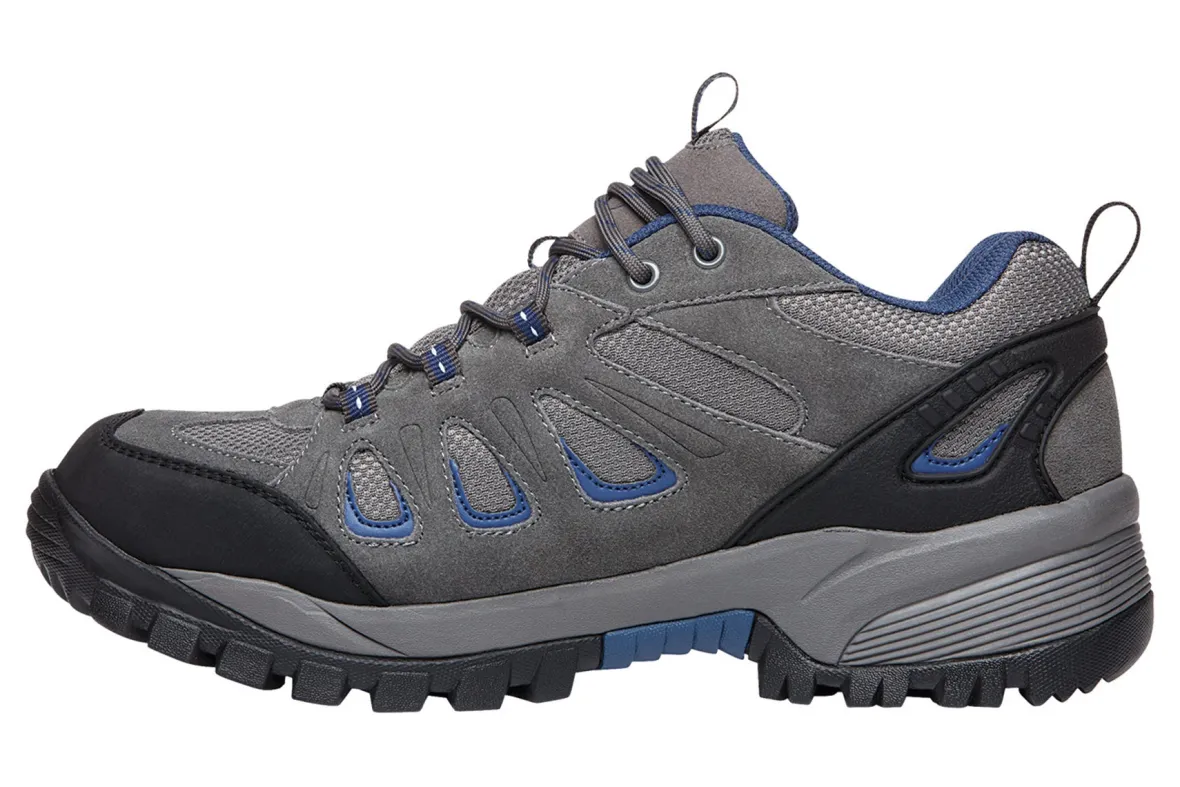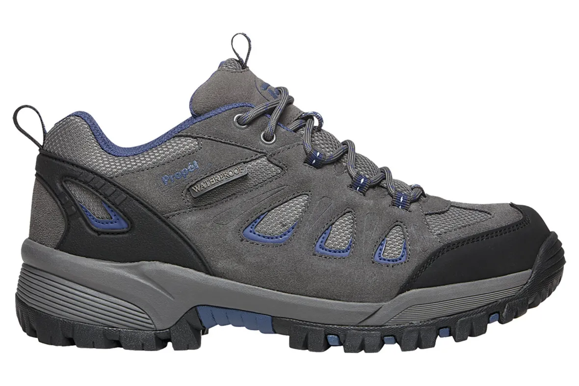 Waterproof bootie construction inside a suede and mesh upper with padded collar and tongue and abrasion resistant rubber toe cap. Breathable Open Cell PU moves moisture from foot for a cooler, healthier footbed. EVA midsole with high traction rubber outsole and toe guard for durable outdoor wear. Diabetic Friendly, Removable Footbed, Waterproof.