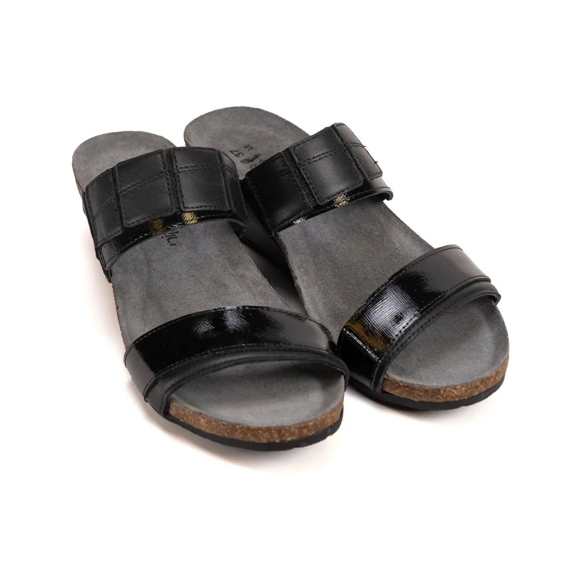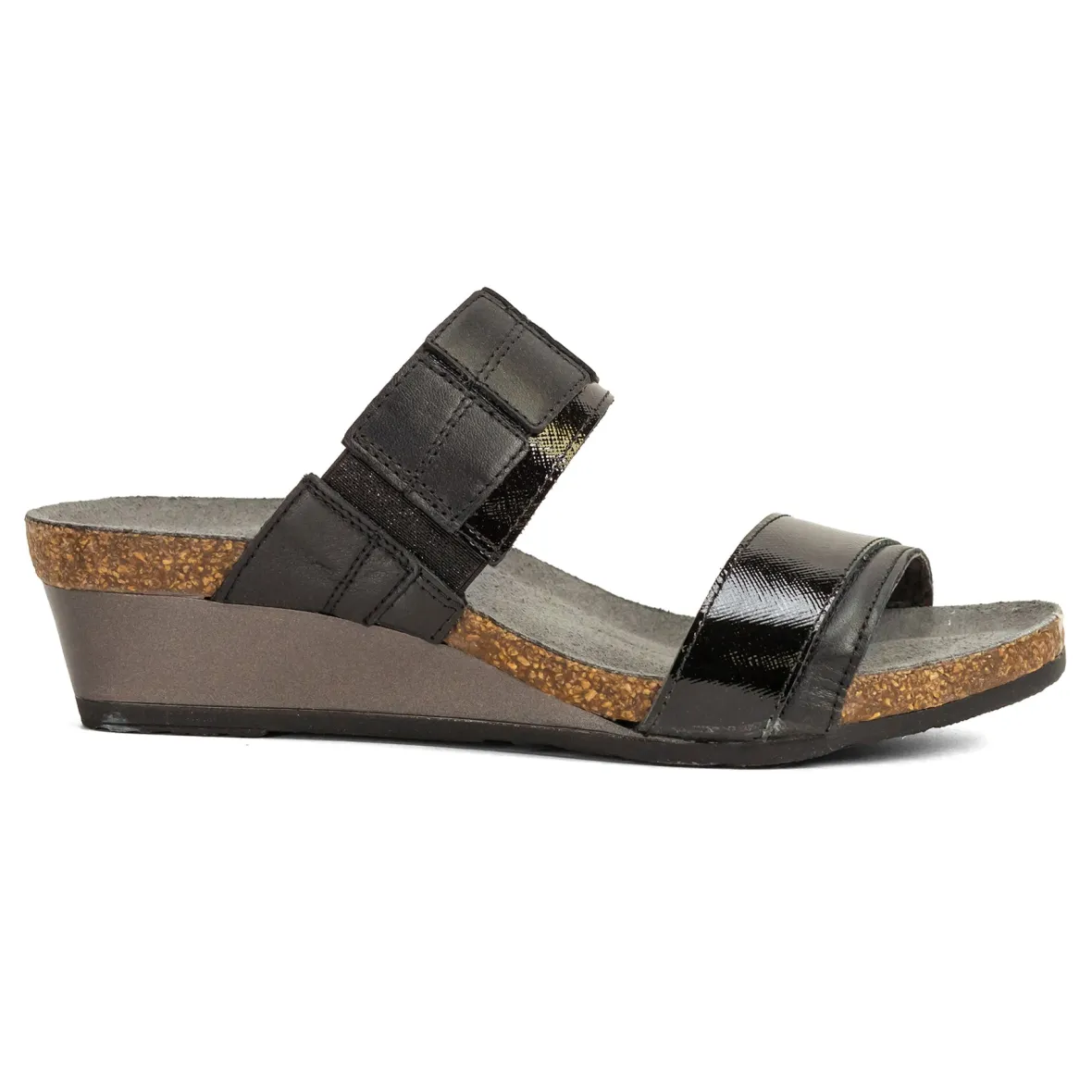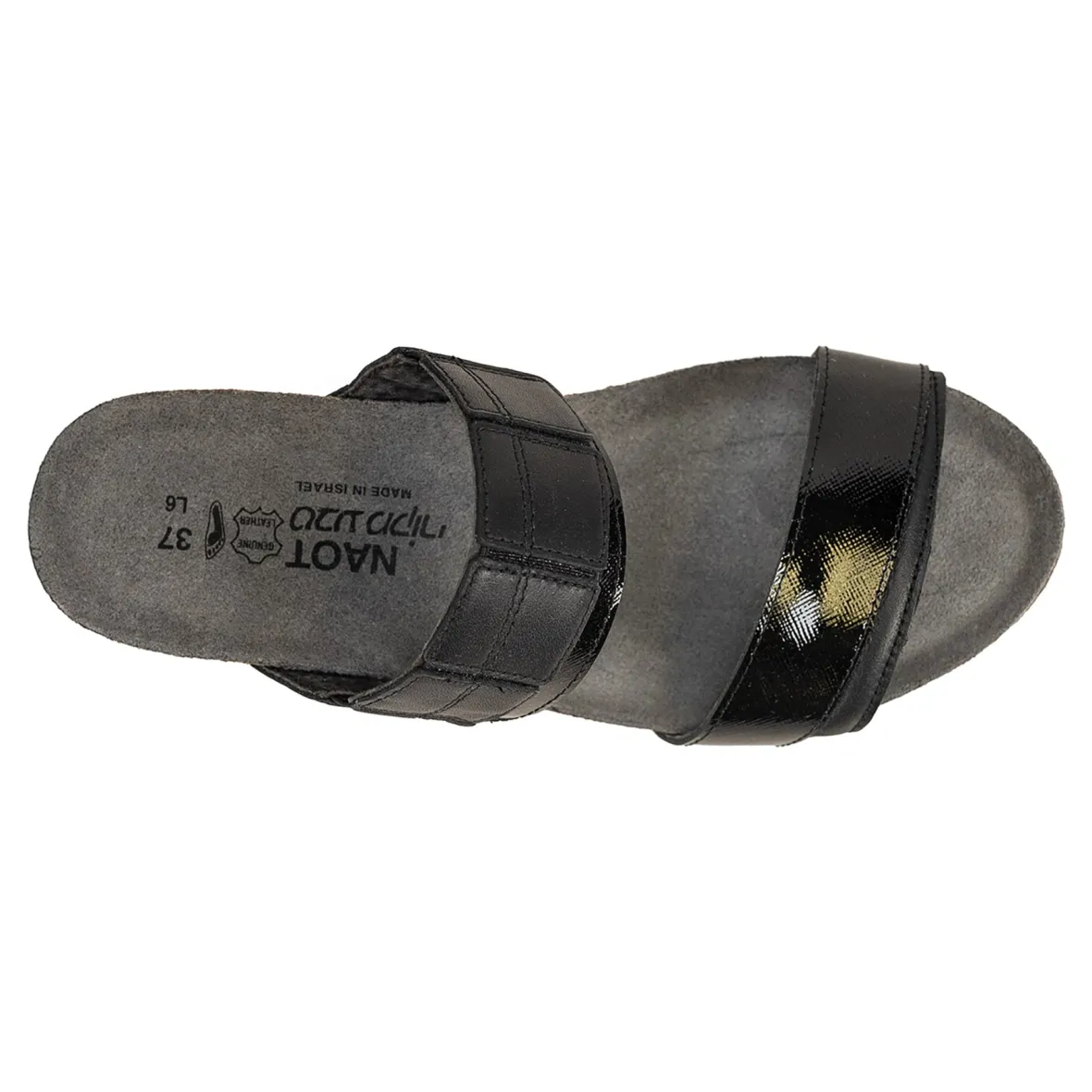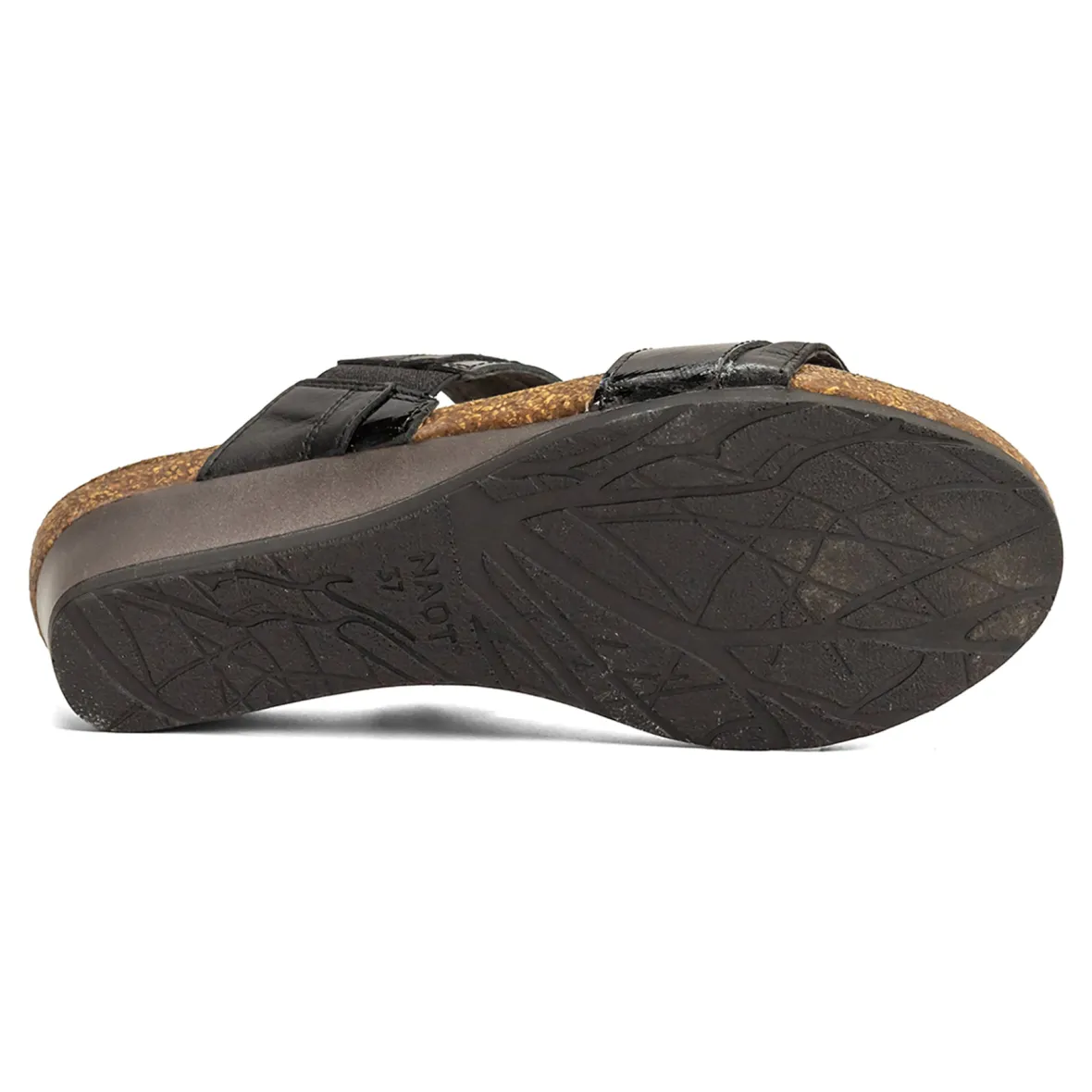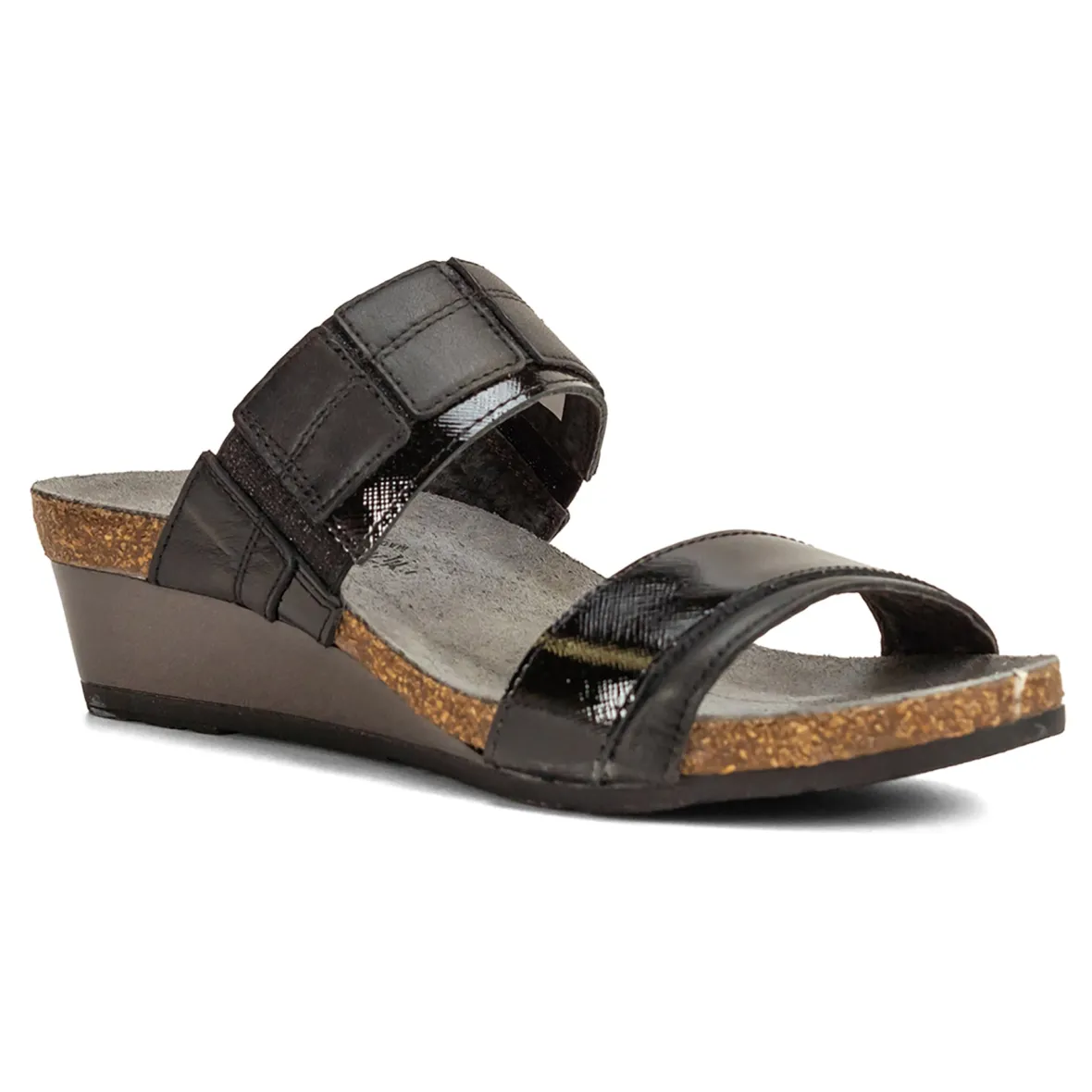Naot Royalty is a dressy slide with a sleek design. An anatomic cork and latex footbed is wrapped in suede and molds to the shape of the foot with wear. A sturdy PU outsole and stretchable instep strap completes this fashionable silhouette.