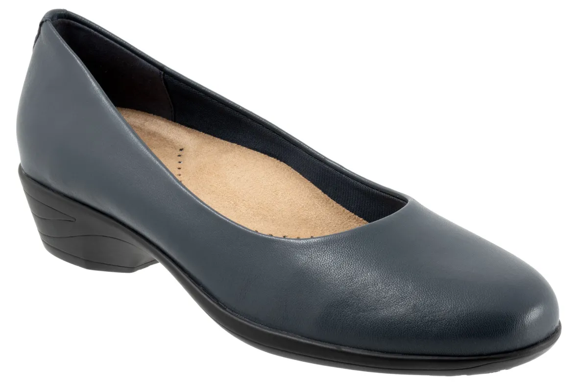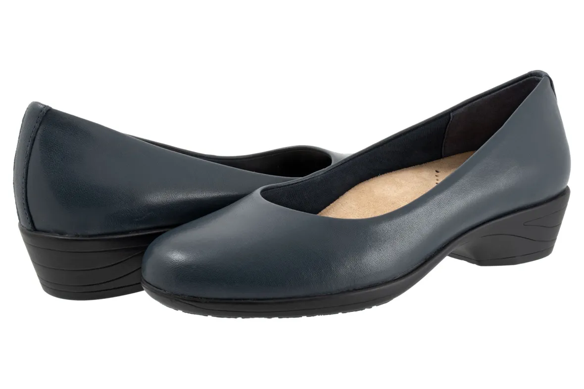 Rozalin is a casual low-heel pump that has a flexible sole and a cushioned removable footbed.
