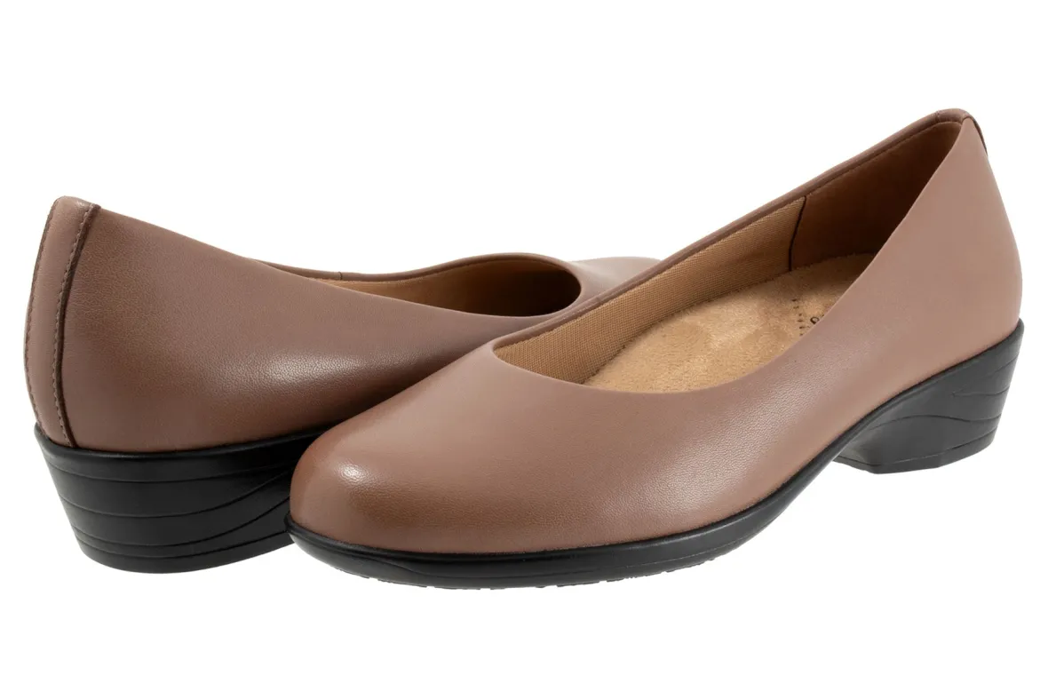 Rozalin is a casual low-heel pump that has a flexible sole and a cushioned removable footbed.