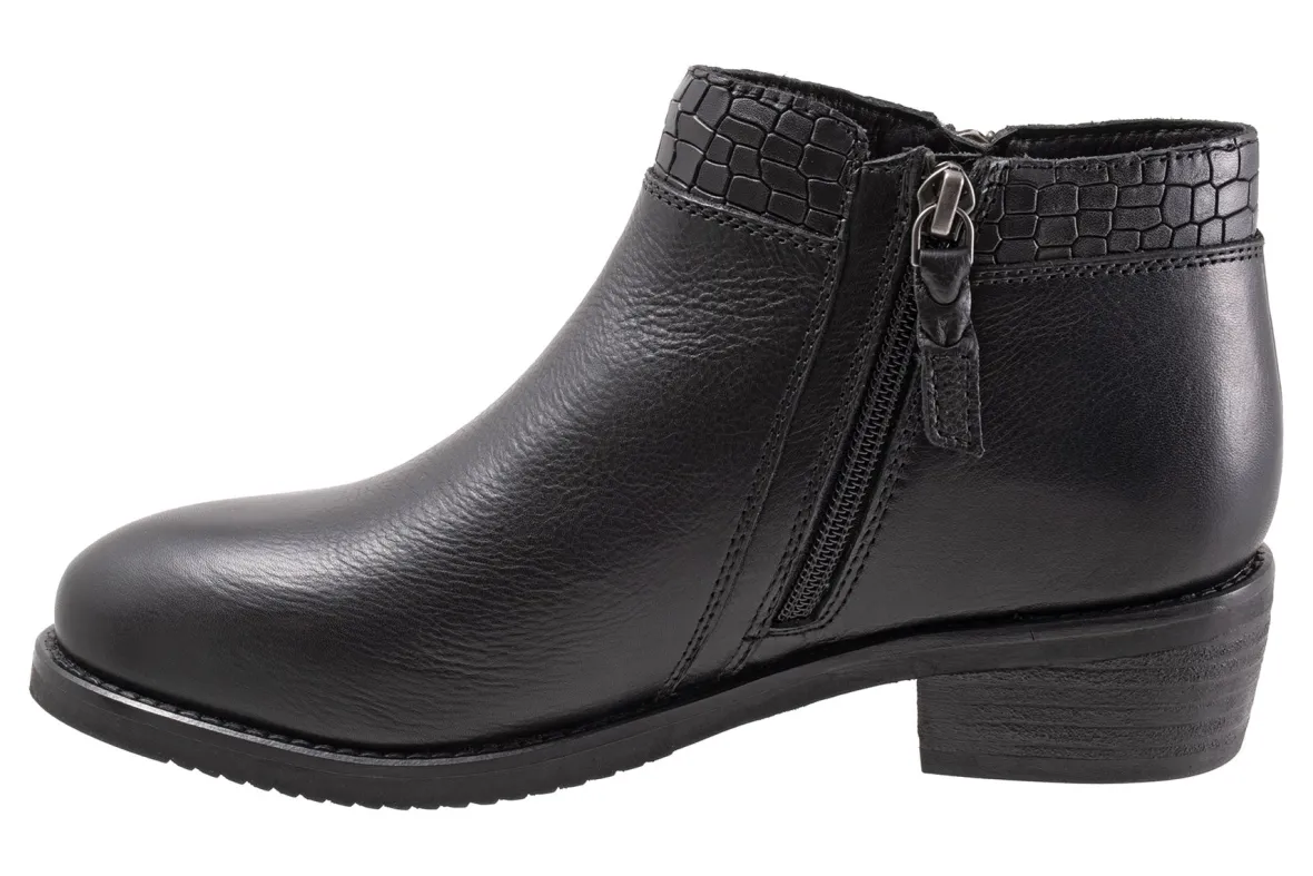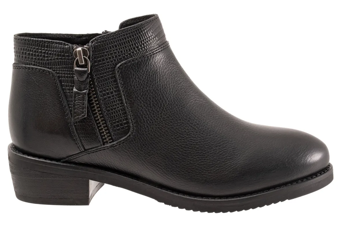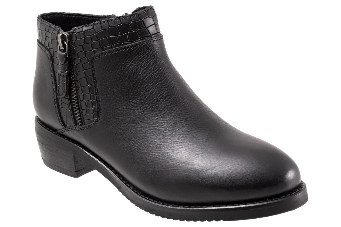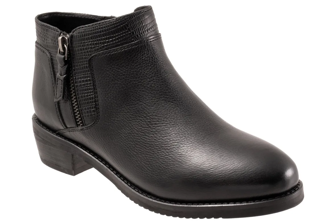Softwalk Rubi is a comfortable and stylish ankle boot. These cold weather shoes have leather uppers, a cushioned removable footbed and rubberized outsole. A microfiber lining, dual zippers and a 1 ¼ inch stacked heel height will make these boots a wardrobe staple.