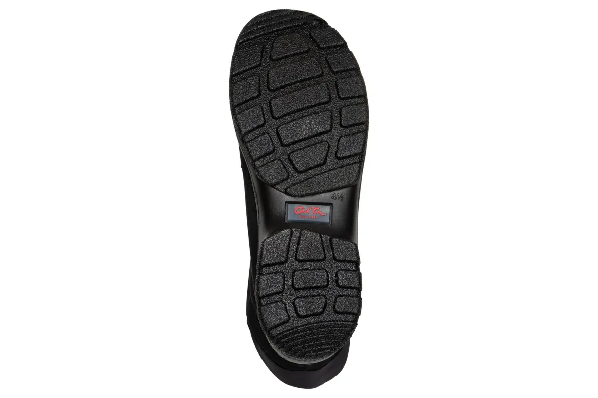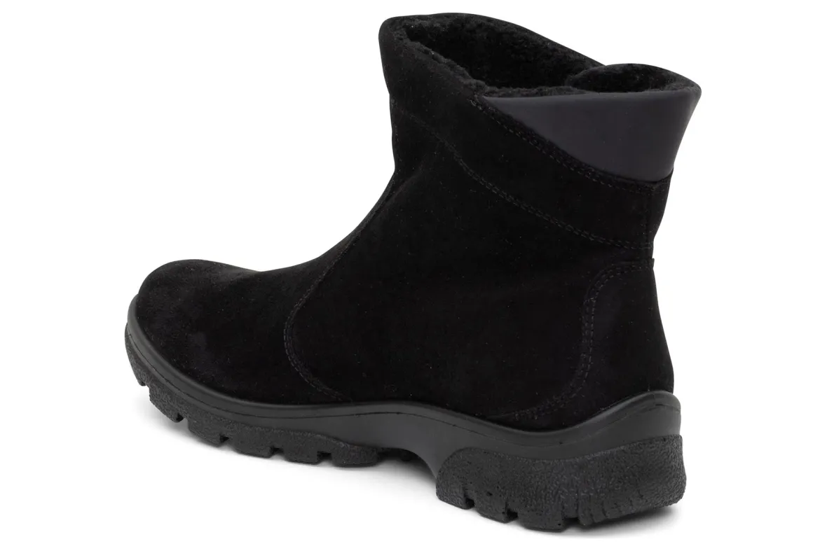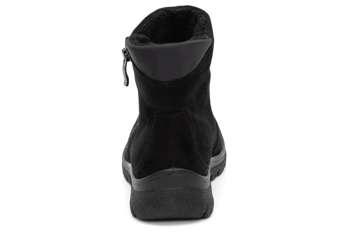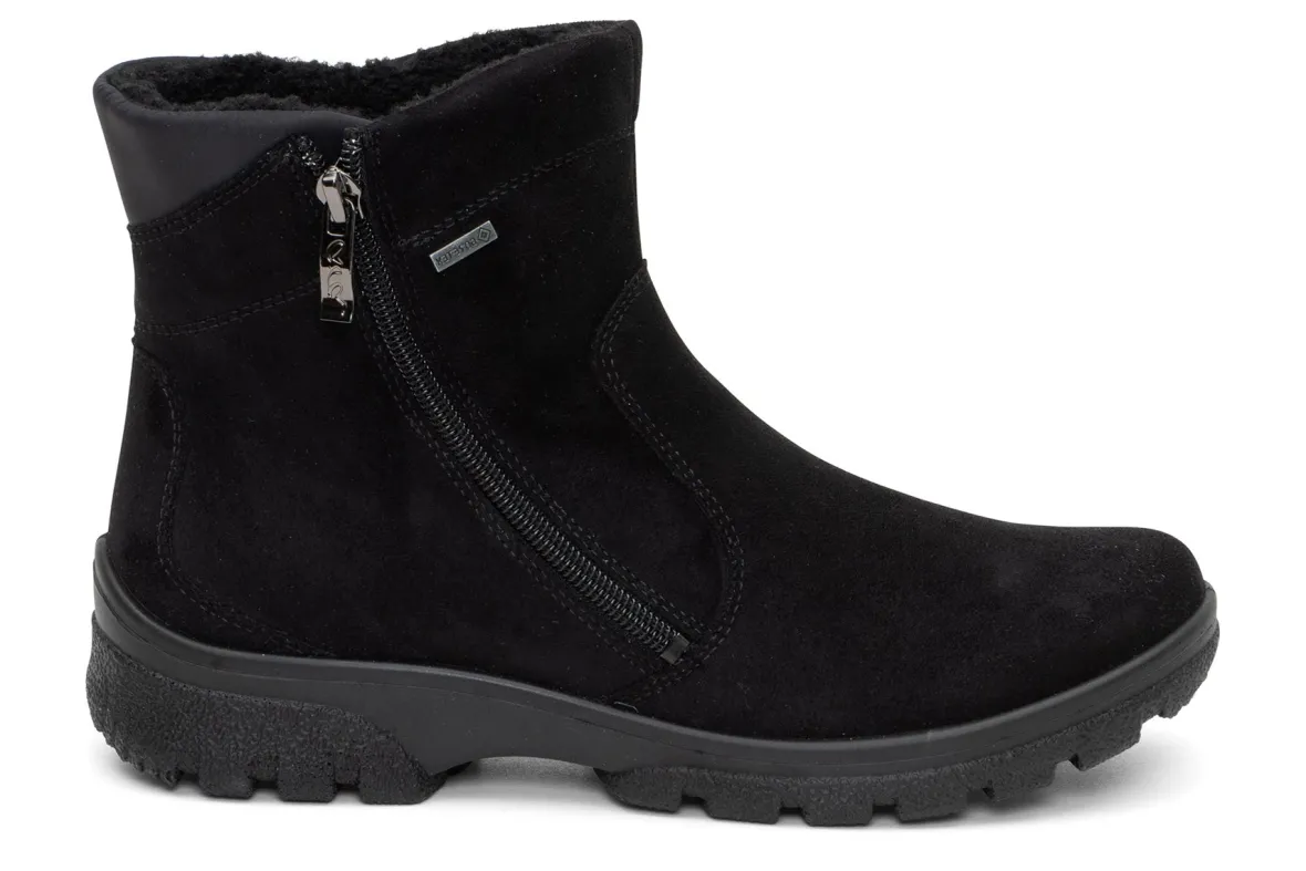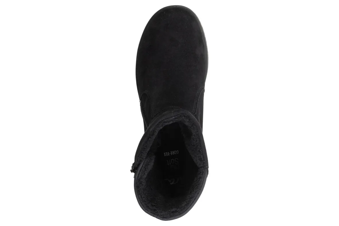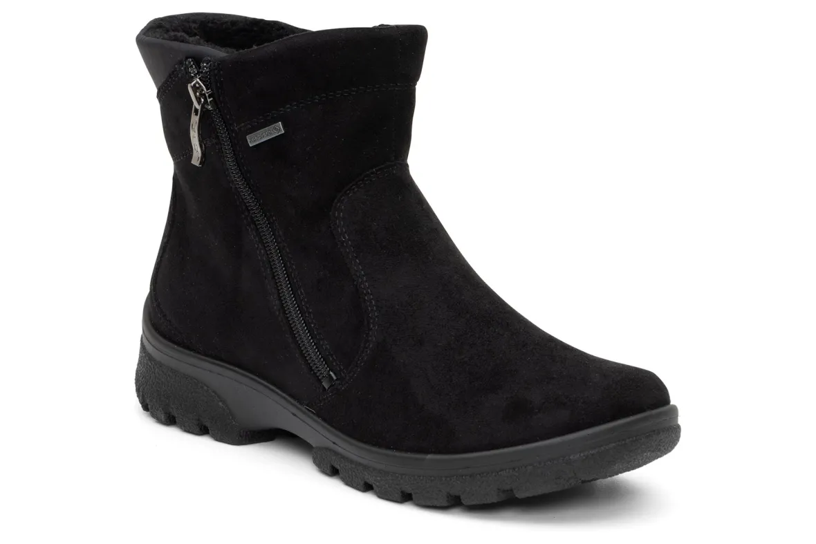 Bad weather is not a problem with these boots from ara.The ara Sableis equipped with a waterproof and breathableGoreTex membrane.It also has a fluffy, soft textile lining that keeps your feet pleasantly warm even on cold days.The robust, easy-care textile was used as the upper material, making this shoelightweight.The outer, slopingzipperlooks casual and allows you for easy on and off.