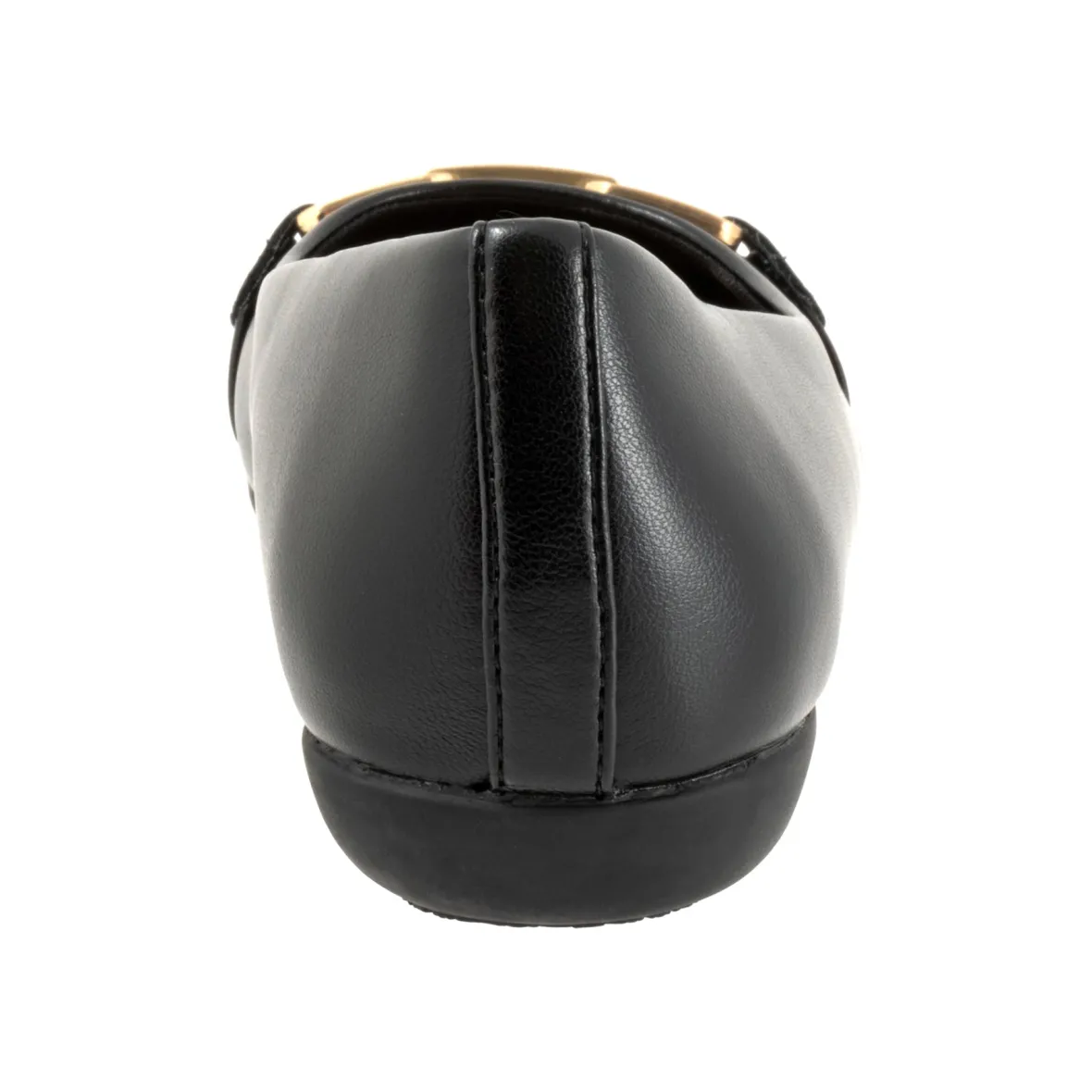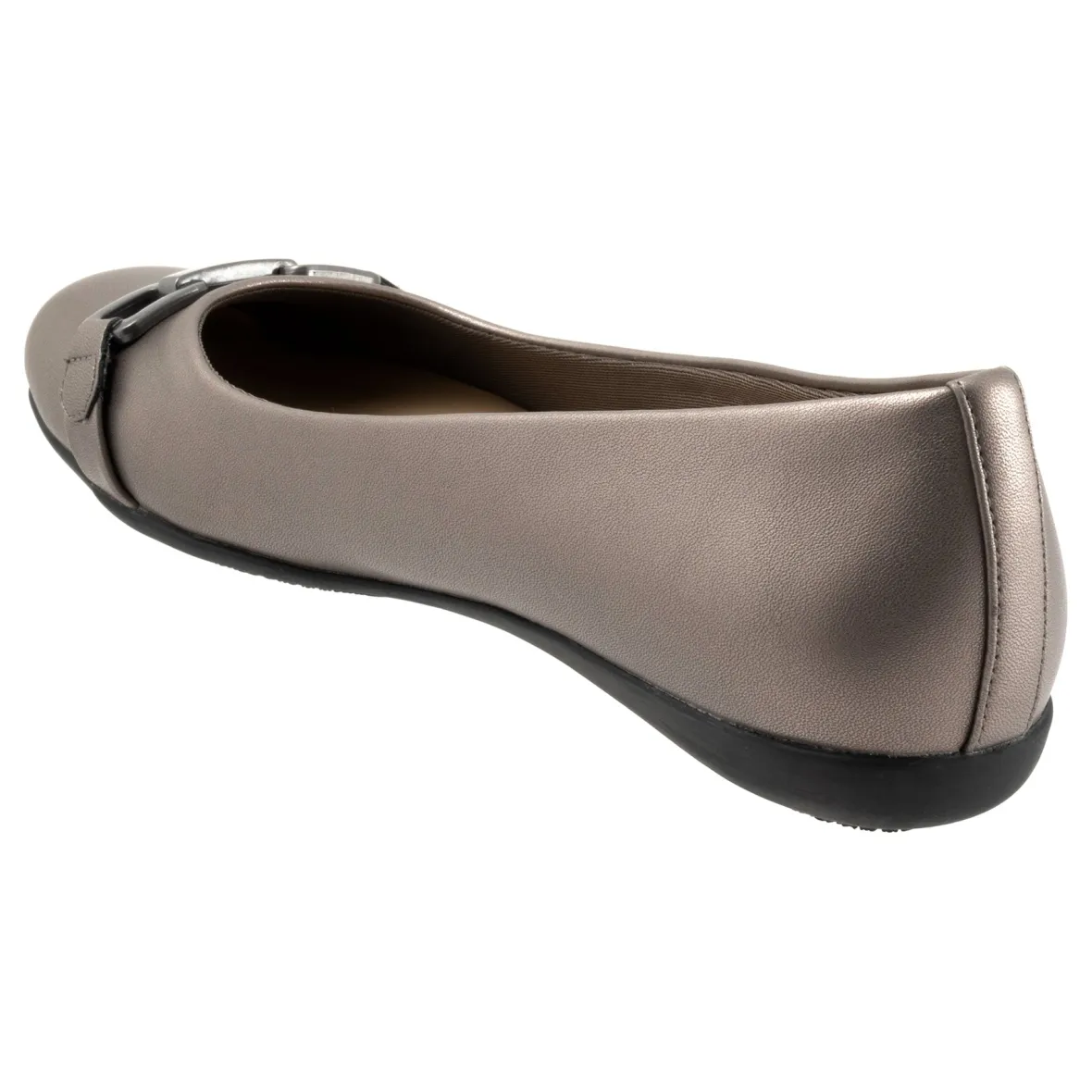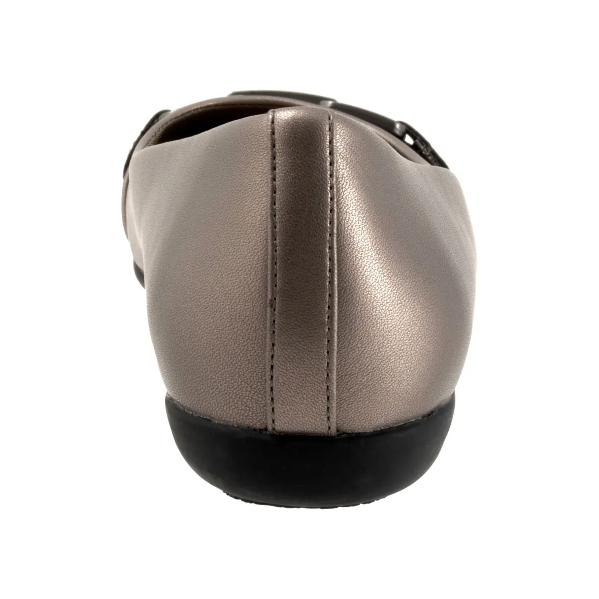 The Sadie flat adds a touch of class with a classy tailored buckle detail. The removable footbed is cushioned and has arch support and the long-wearing sole is based from a Trotters best seller.
