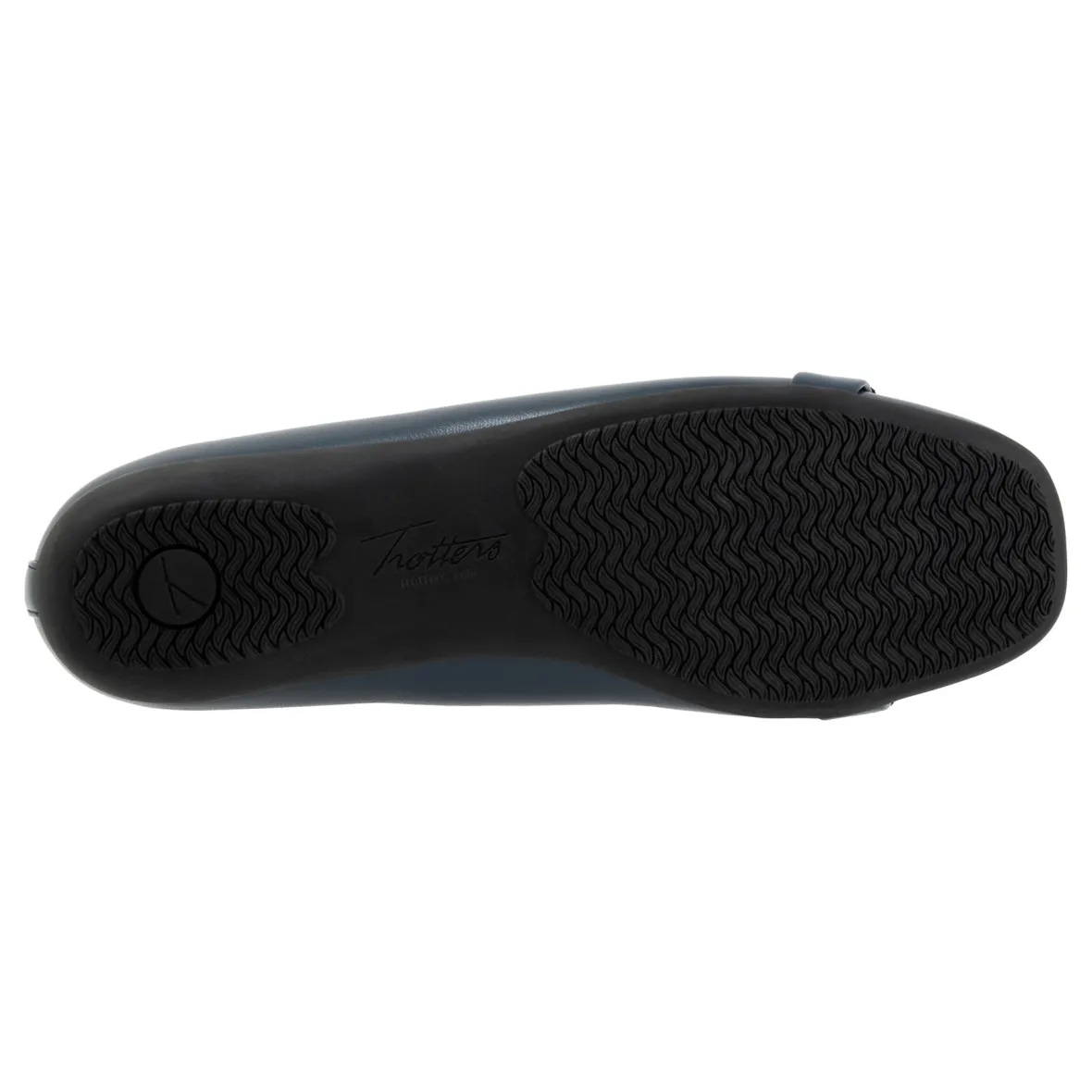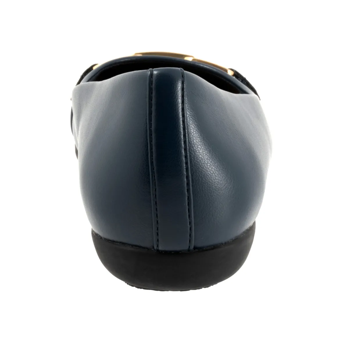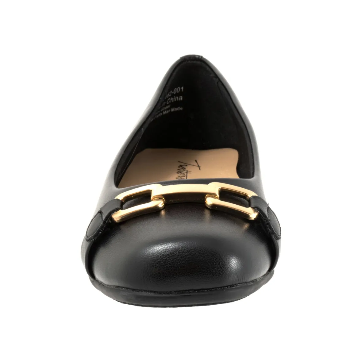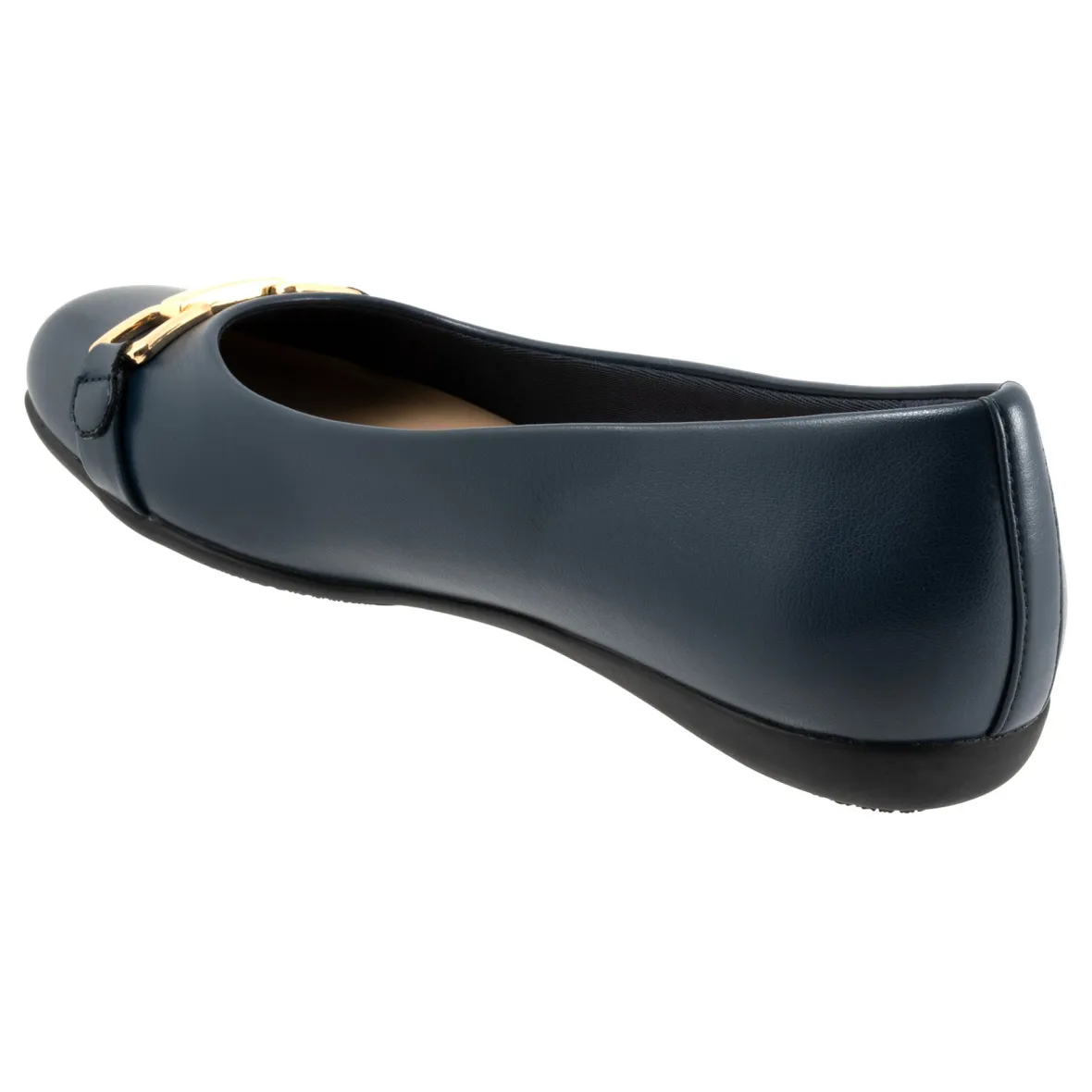 The Sadie flat adds a touch of class with a classy tailored buckle detail. The removable footbed is cushioned and has arch support and the long-wearing sole is based from a Trotters best seller.