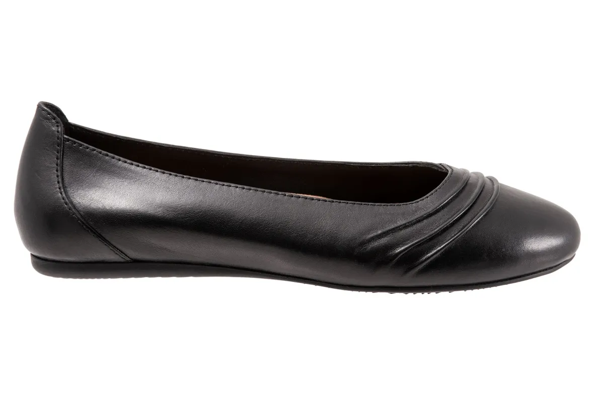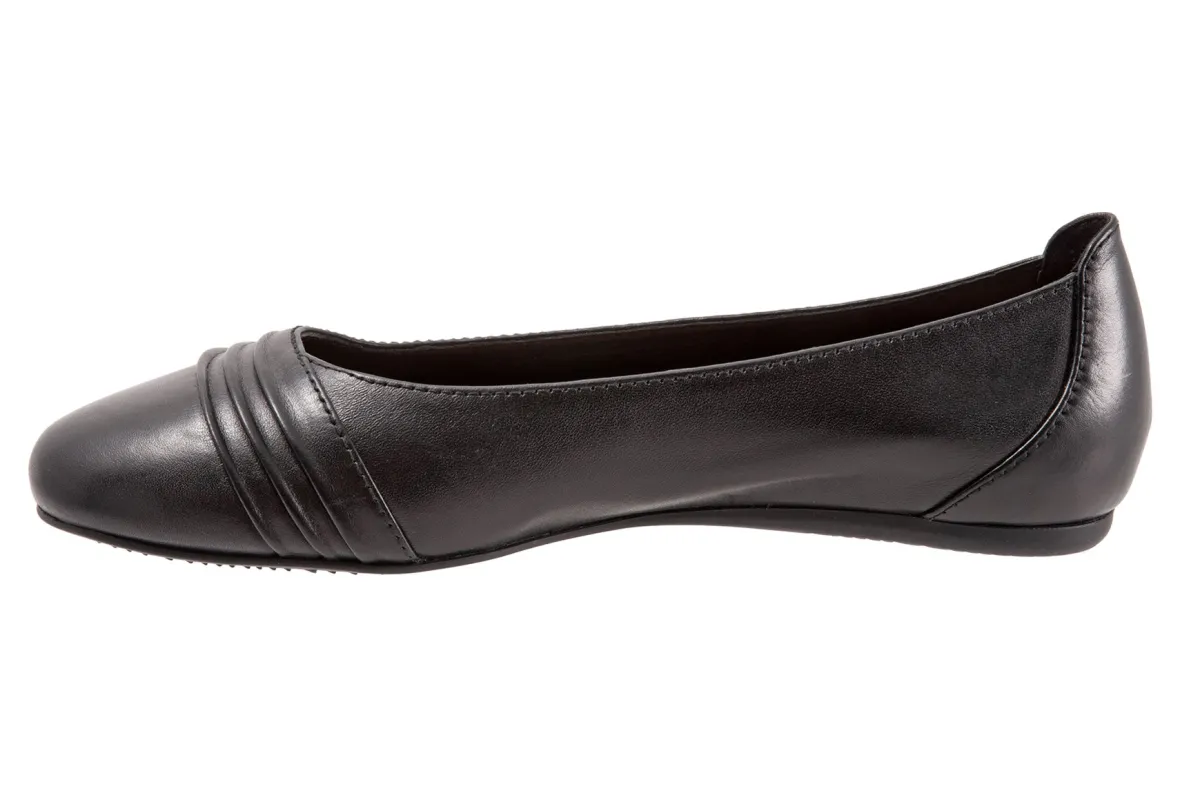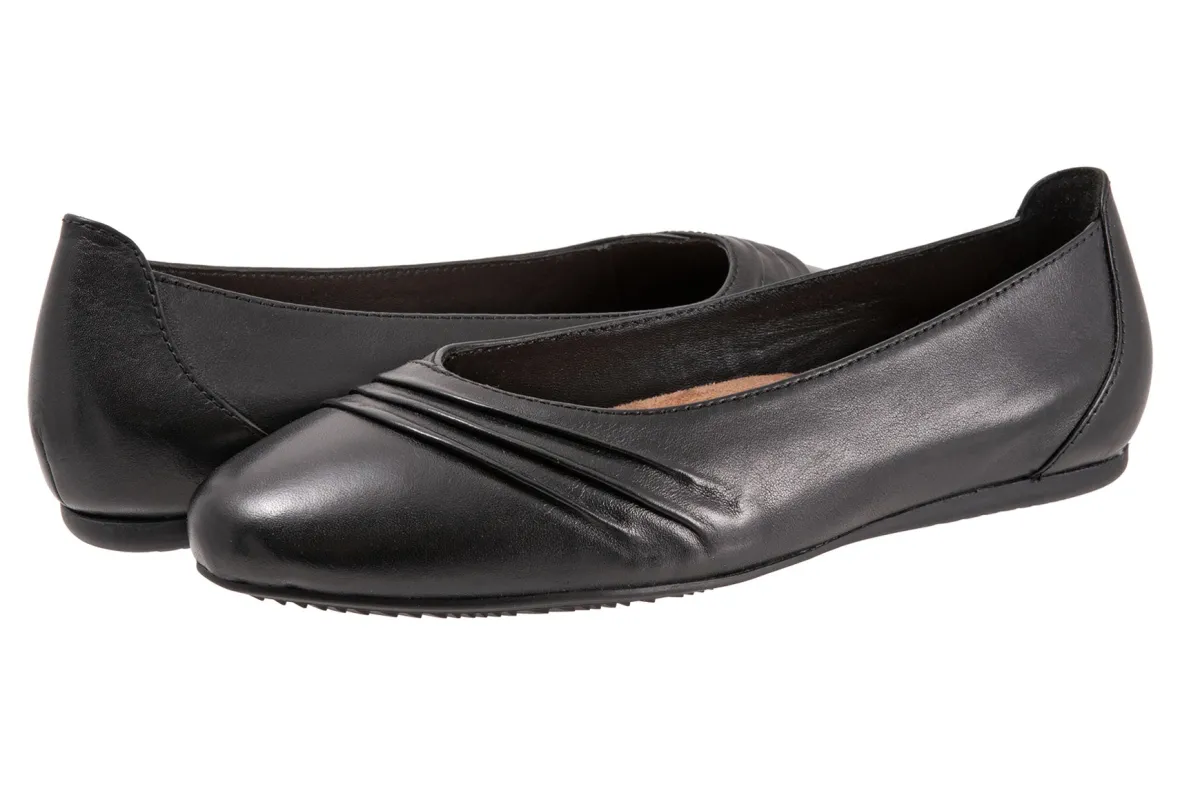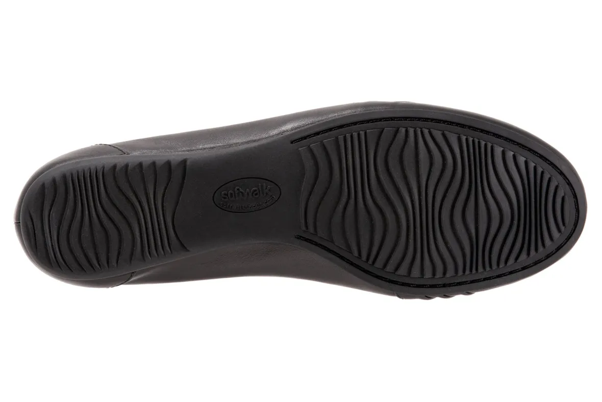 Softwalk Safi is a cute, comfortable and sleek ballet flat. These versatile shoes have premium leather uppers, a removable cushioned footbed, a microfiber lining and a slip-resistant rubber outsole.