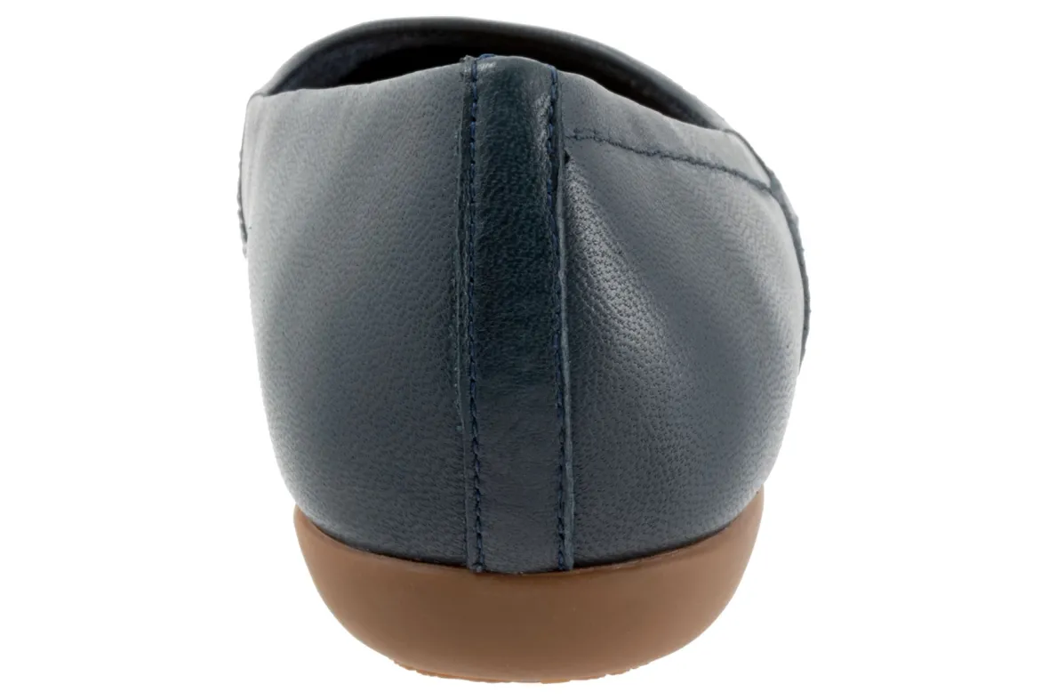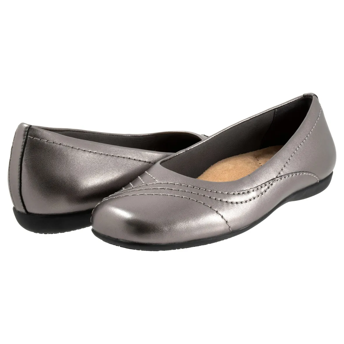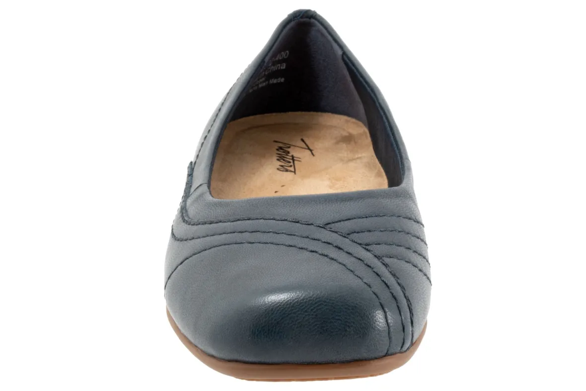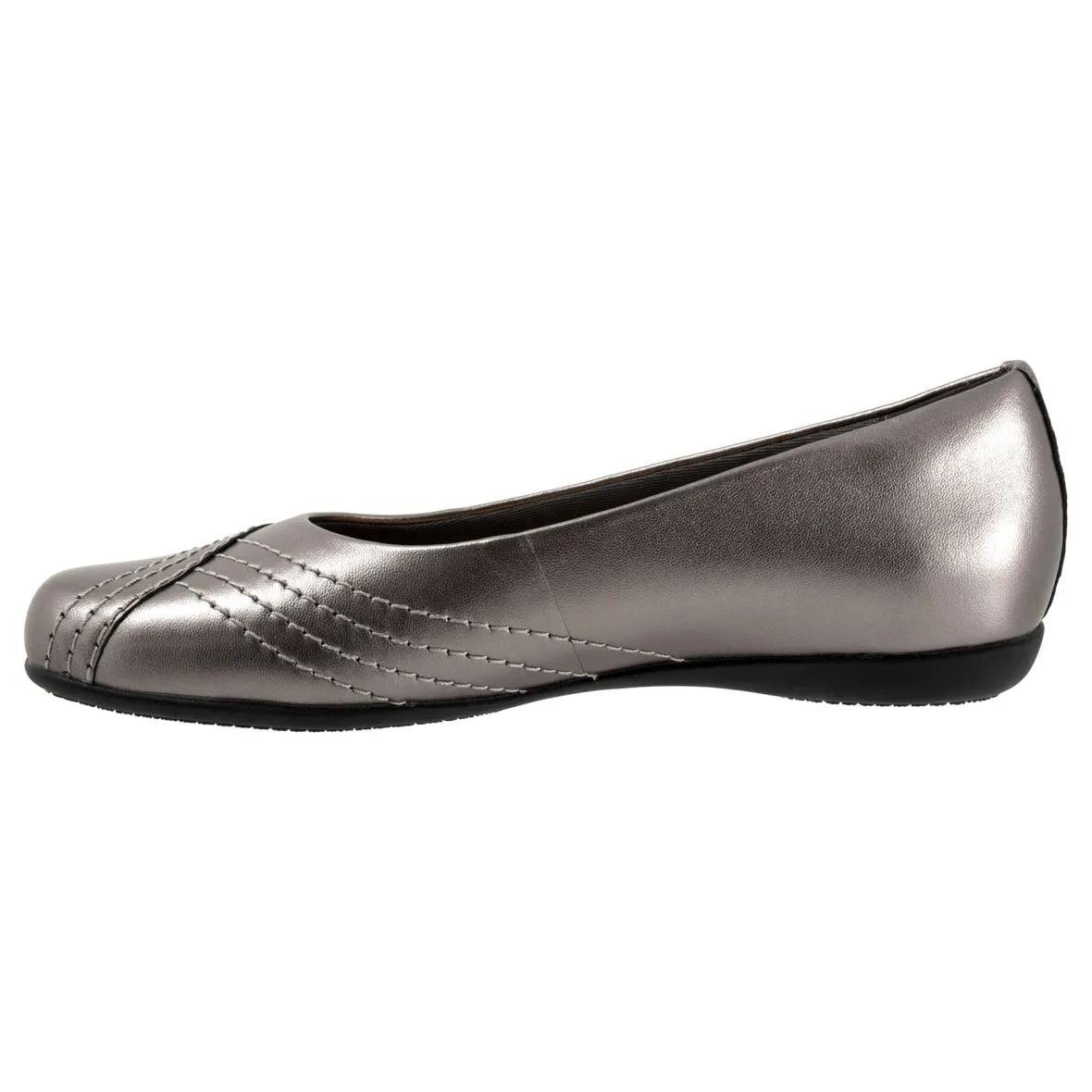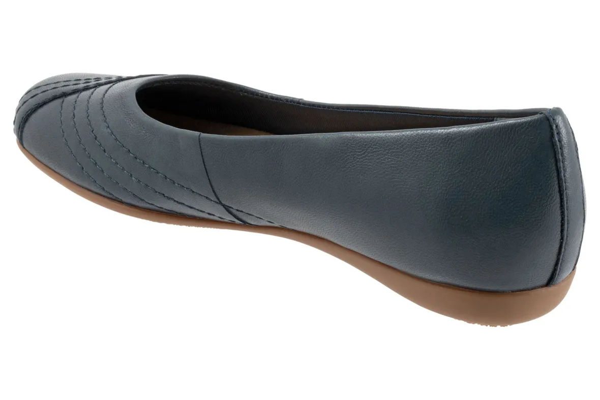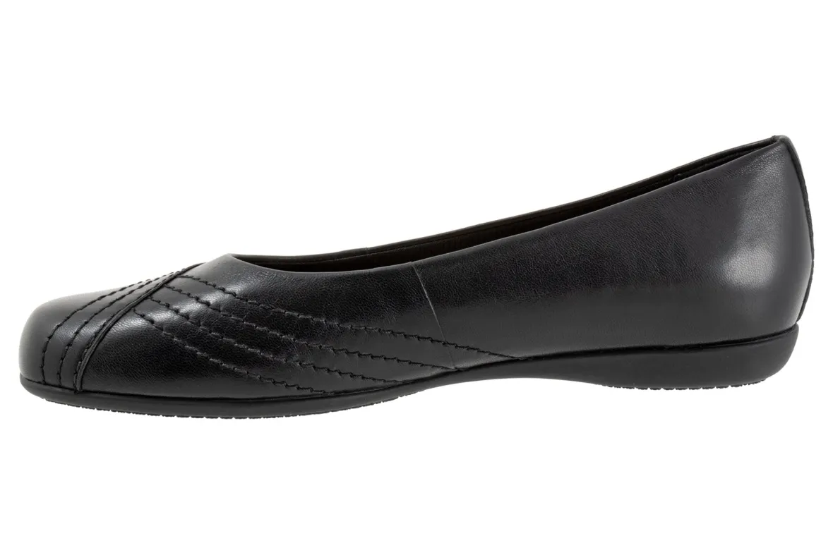 Wavy lines of stitching and overlapping leather give the Sasha flat a sense of whimsy. The removable footbed is cushioned and has arch support and the long-wearing sole is a Trotters best seller.