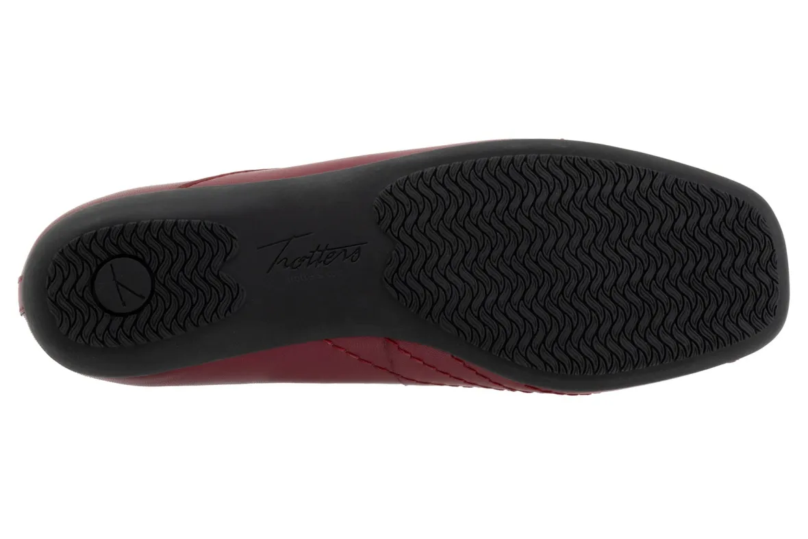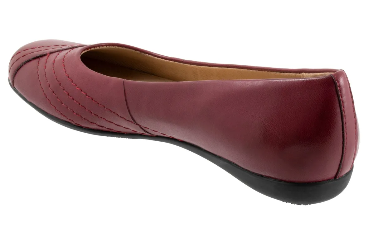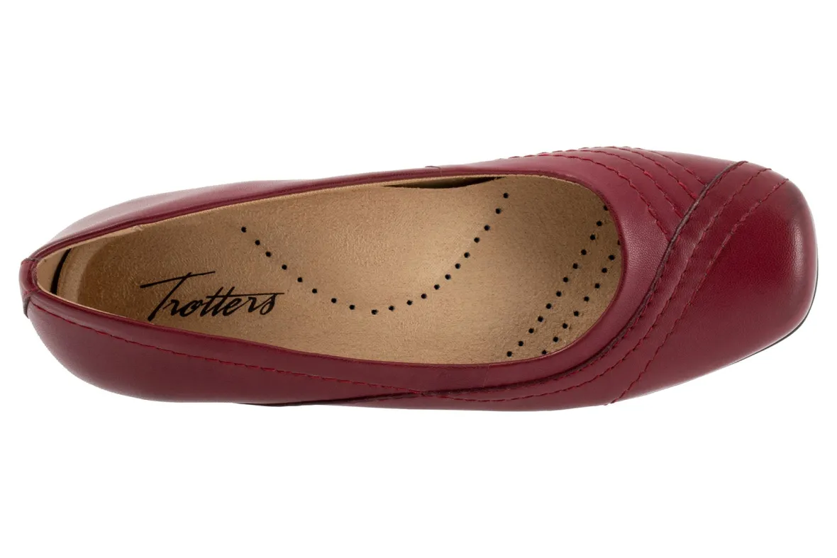 Wavy lines of stitching and overlapping leather give the Sasha flat a sense of whimsy. The removable footbed is cushioned and has arch support and the long-wearing sole is a Trotters best seller.