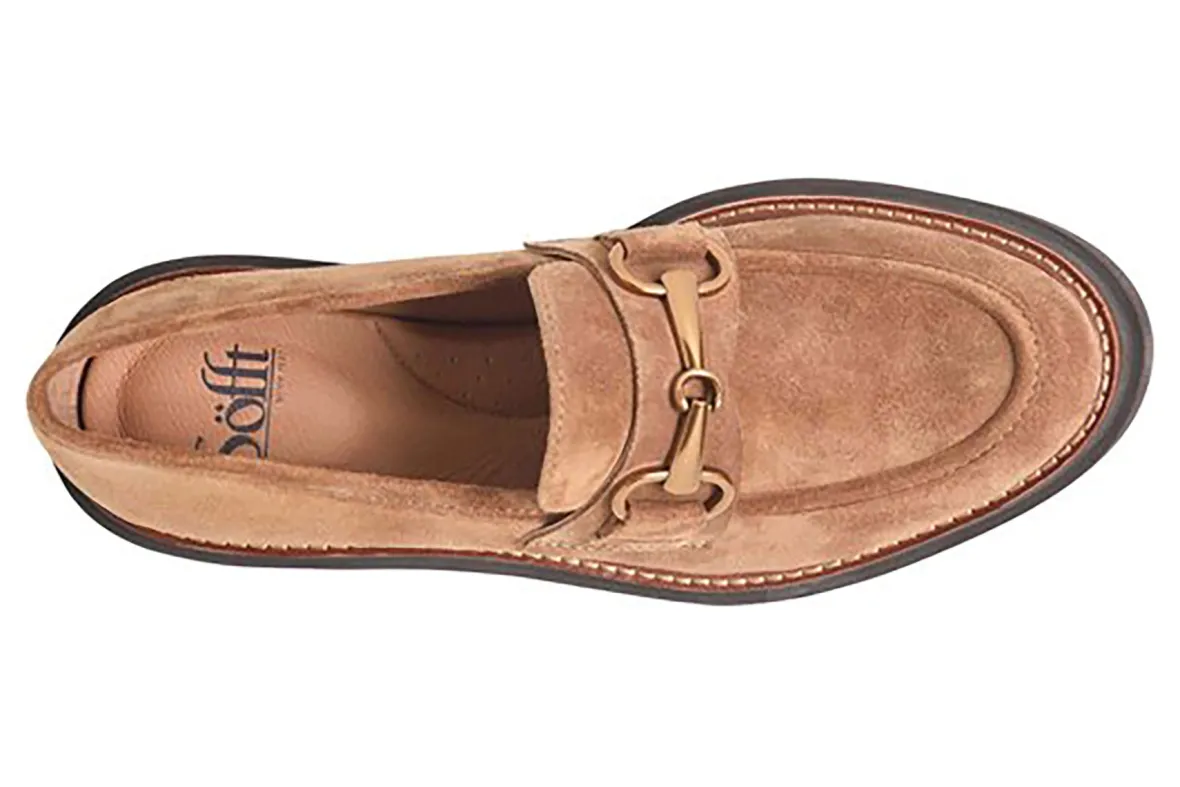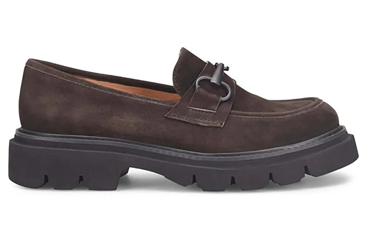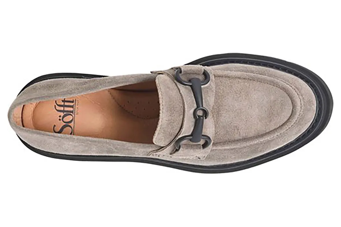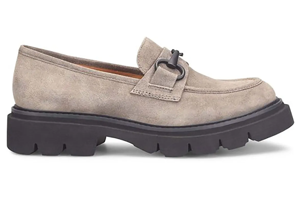 Sofft Satara is a stylish and versatile horsebit loafer. Prominent features include suede uppers, a leather-lined cushioned footbed and a chunky lugged outsole.