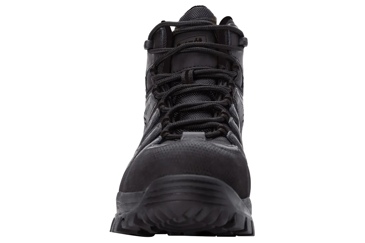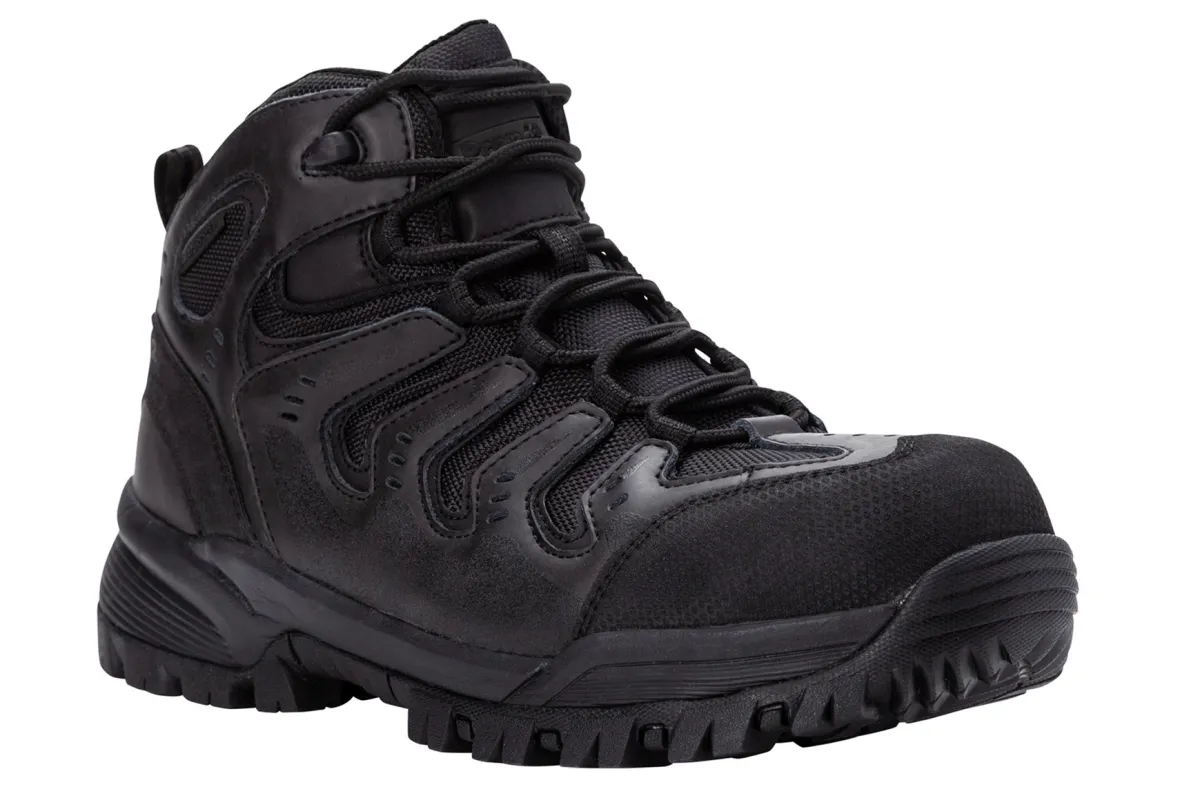 Propet Sentry is a rugged work boot for any task. These waterproof booties have Crazy Horse leather and mesh uppers, EVA midsole and durable rubber outsole. A padded collar and tongue, abrasion resistant rubber toe cap and removable footbed will make these work boots a daily staple.