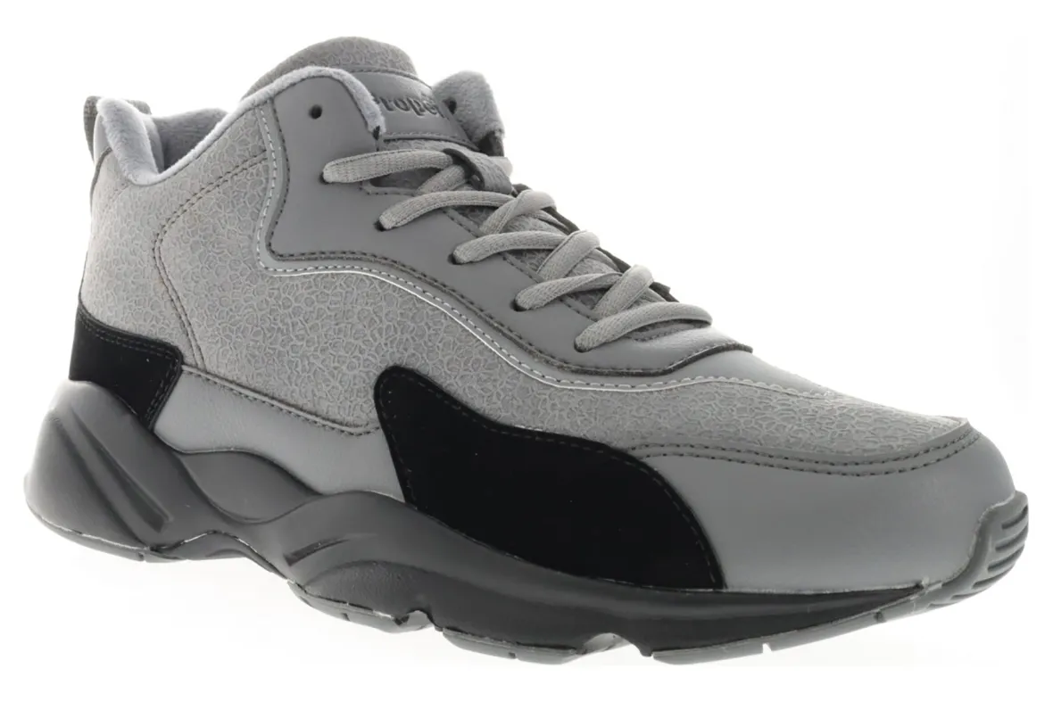 Propet Stability Mid is a sporty mid top sneaker. Prominent features include a mesh and synthetic upper, removable footbed, EVA midsole and rubber outsole. A soft and cushioned PU insole adds comfortability, while a roomy toe box provides breathability and stability.