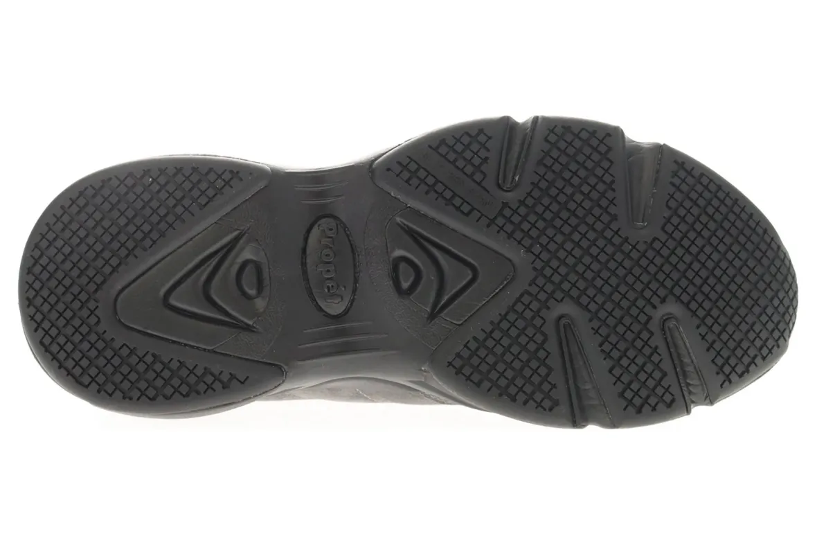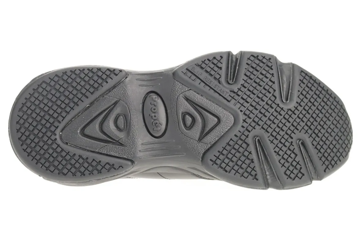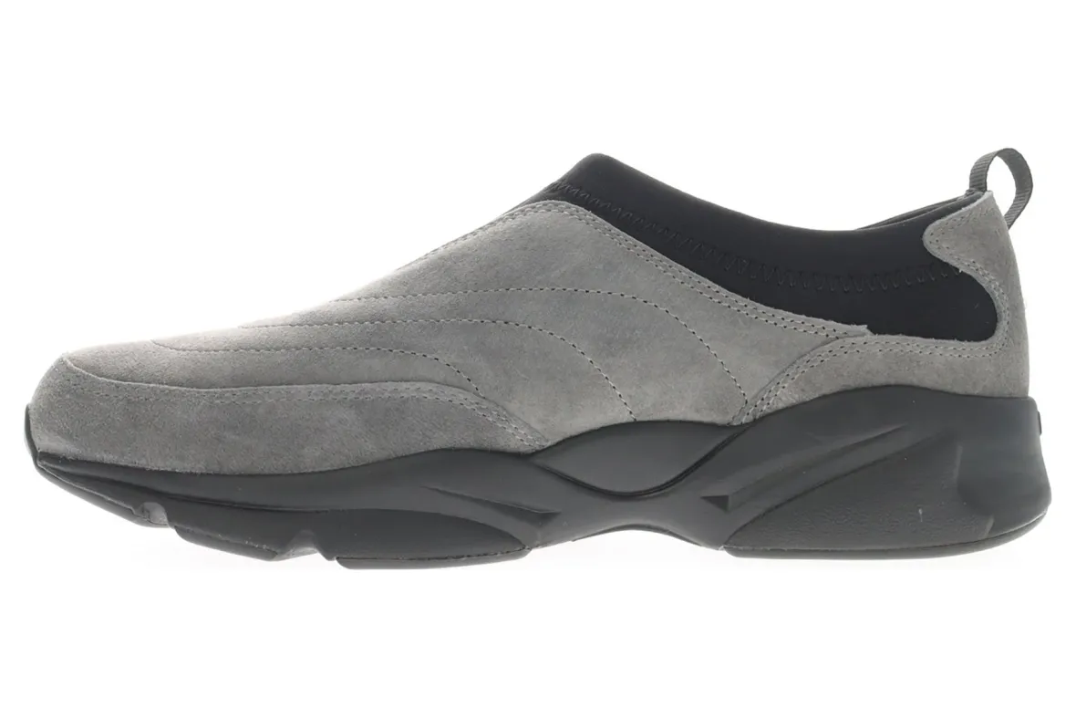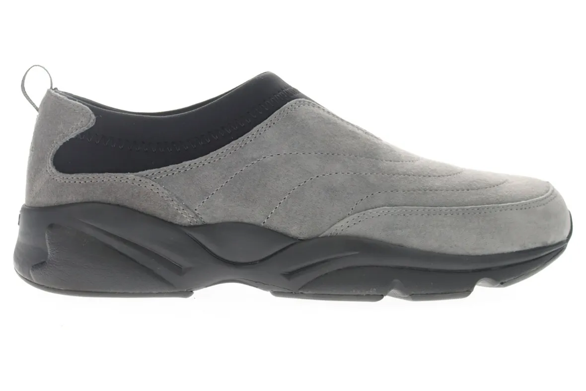 Leather or Nubuck slip-on with center gore and a roomy toe box providing toes space to spread out improving stability. Soft cushioning PU for even wear with comfort ridges in the forefoot and memory foam topper. Supportive EVA midsole with rubber outsole for a long-lasting smooth stride. Slip Resistant, Scotchgard™ stain and water resistant treatment.