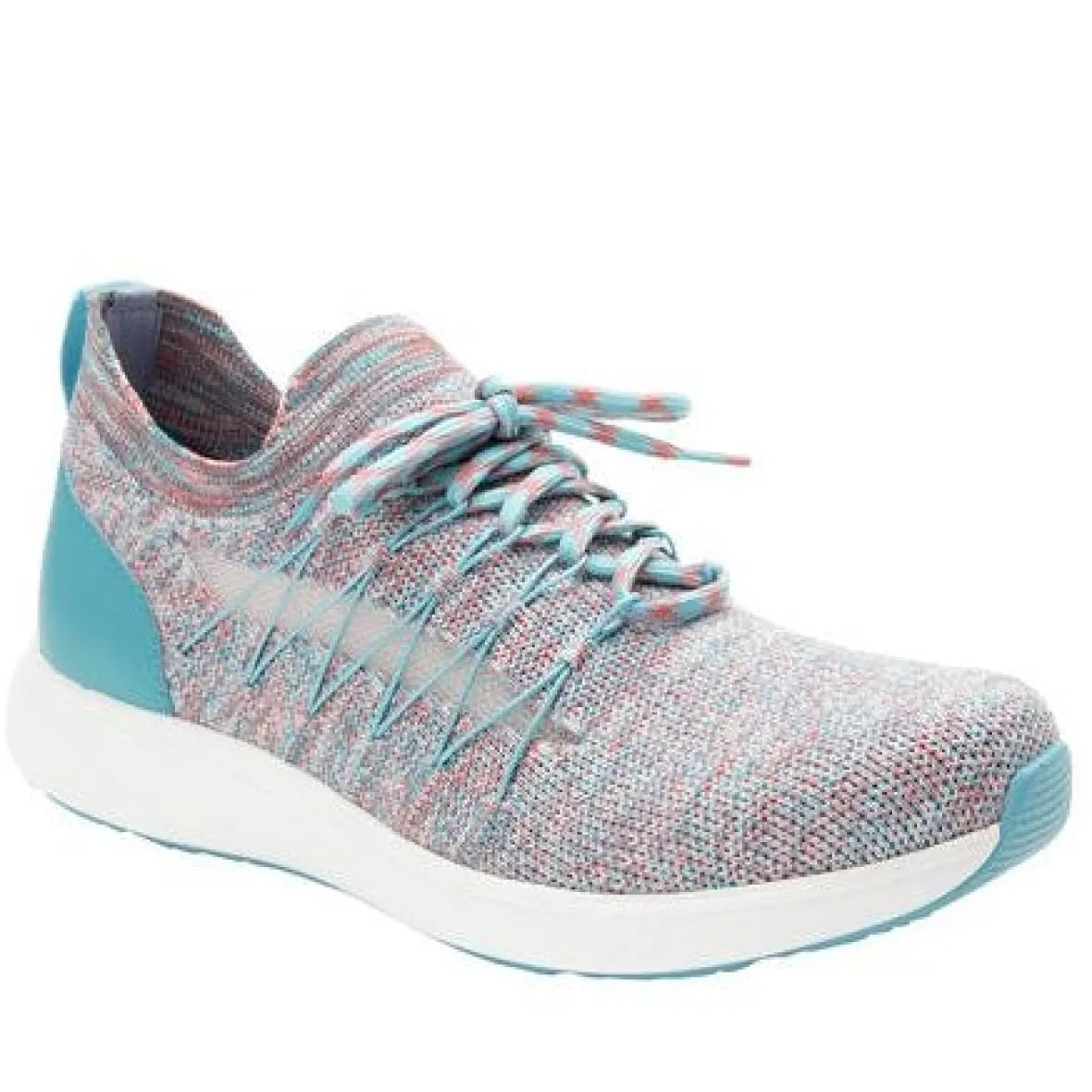Alegria Synq is a comfy and sporty women’s sneaker. Prominent features include a sock-like knit upper, a removable footbed and a slip-resistant PU outsole. This sleek walking shoe also has a built in pedometer, back pull tabs and protective heel cups for a supportive sneaker great for any workout.
