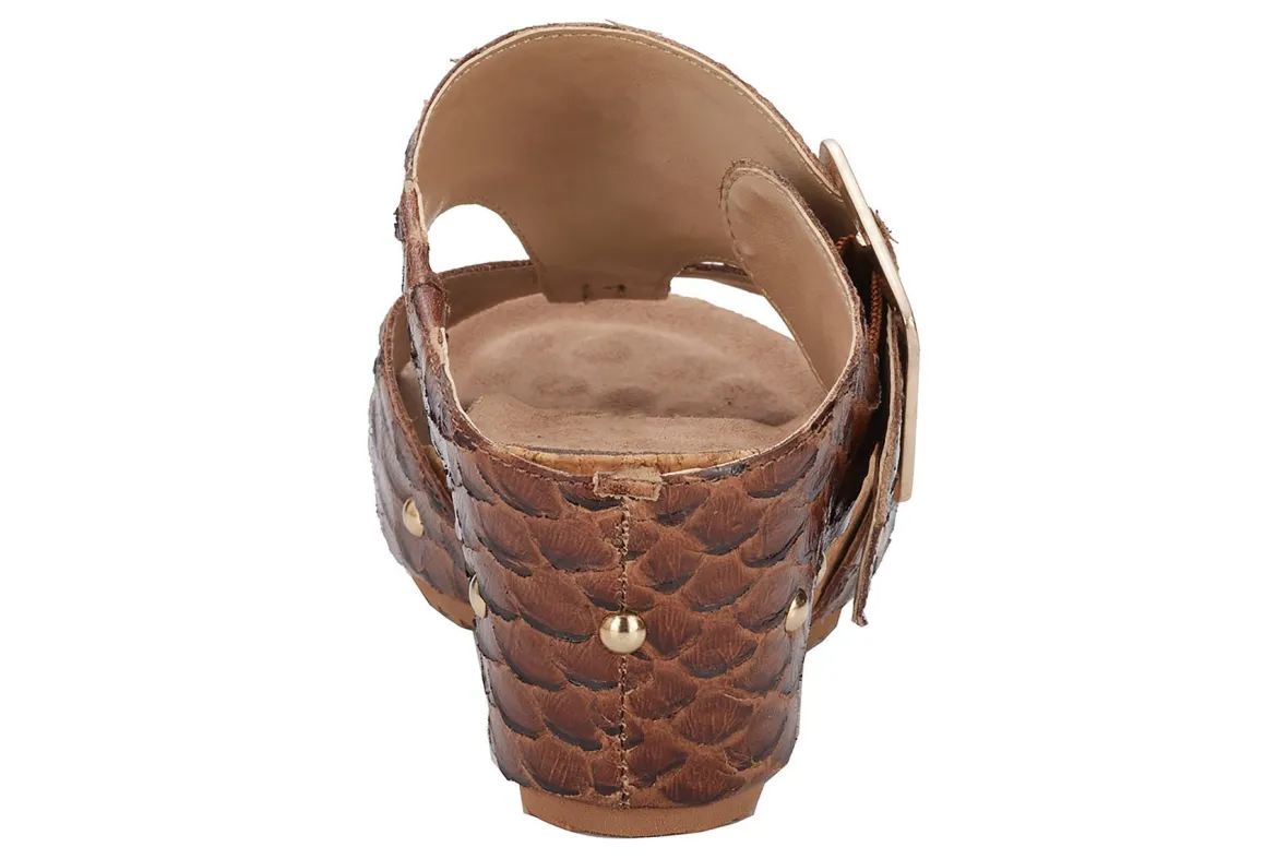 Ros is combining the best of both worlds – a footbed sandal on a platform wedge! Designed in beautiful leather uppers, the Thea sandal is easy to wear and comfortable all day! With a 2 1/2” heel and a 1 1/8” platform, your feet don’t feel like you are wearing a heel! A large metal buckle is both stylish and functional and there is a tiny hidden gore on the instep to provide additional flexibility. With its comfy Tiny Pillows footbed, Thea will take your summer comfort to a new level!