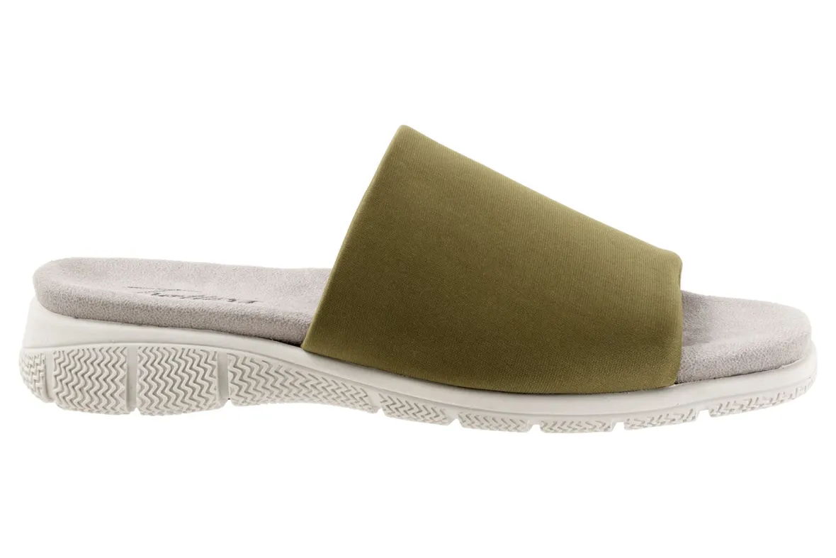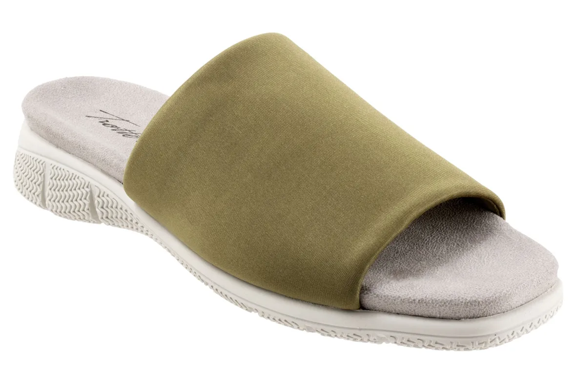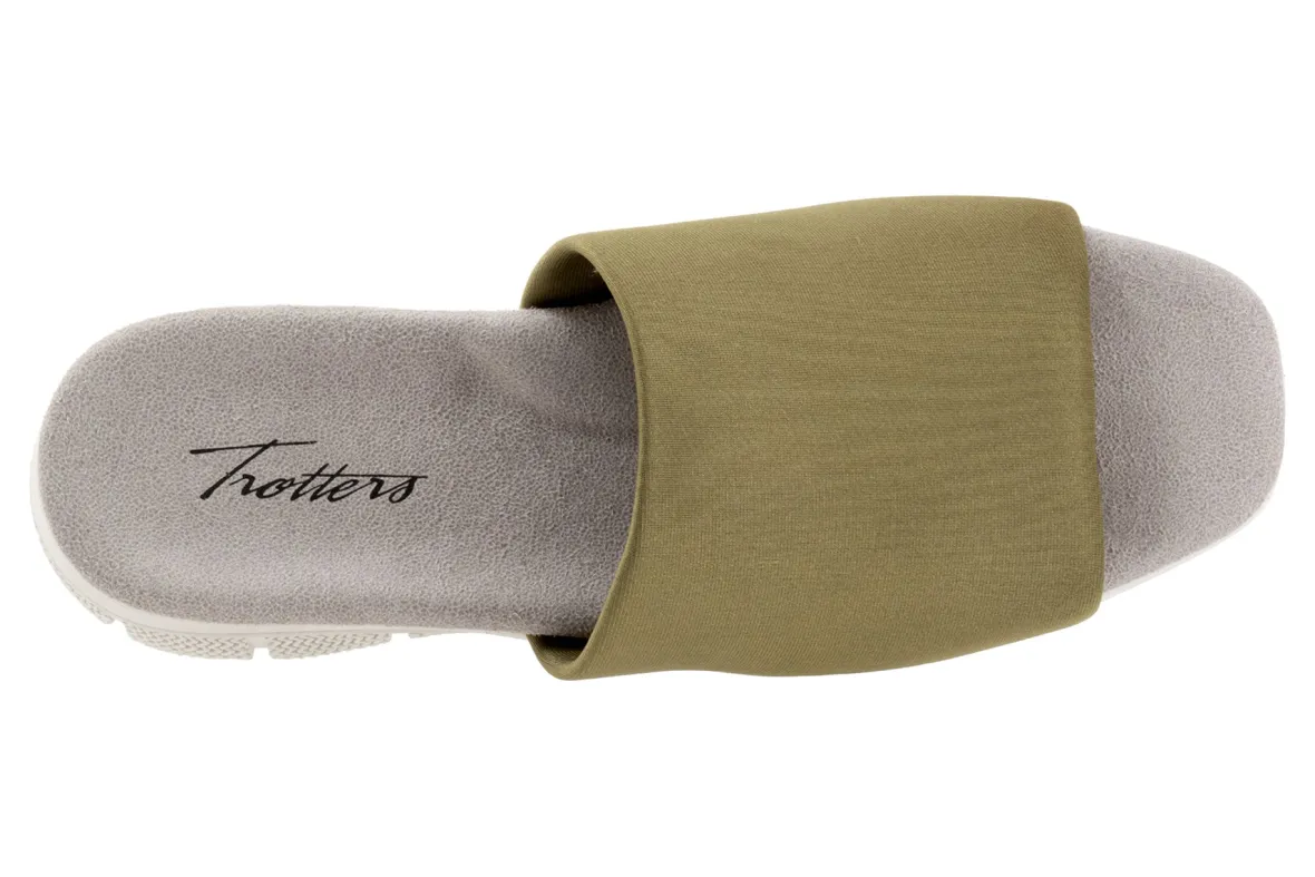 Trotters Toni is a sporty slide sandal built for comfort. These versatile slides have fabric stretch uppers, memory foam cushioned footbed and EVA outsole. A wide thick upper band, soft microfiber lining and 1-inch heel height will make these summertime slides a new favorite.