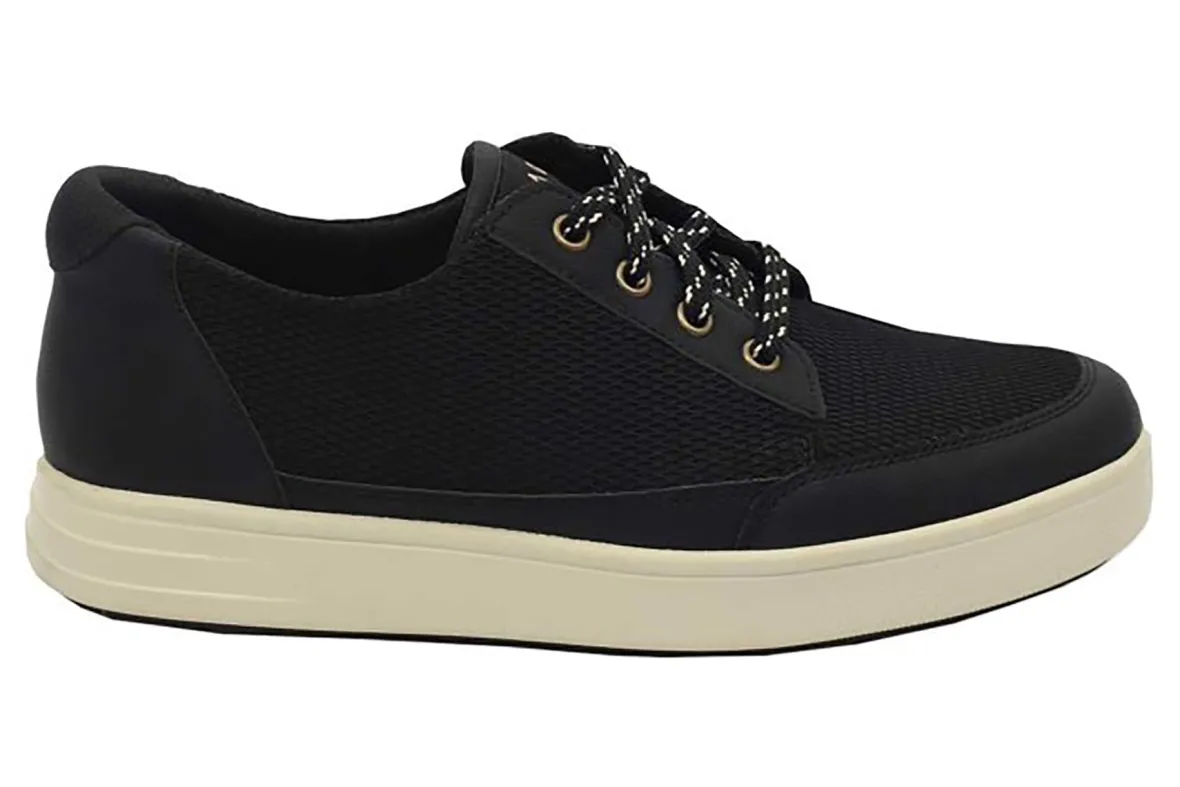 Alegria Traq Copacetiq is a classic sneaker with modern features. These sneakers have a breathable mesh upper, removable footbed and slip-resistant PU outsole. Smart Q-Chip technology contains a built in pedometer to track steps, while the lace-up style keeps feet supported all day long.