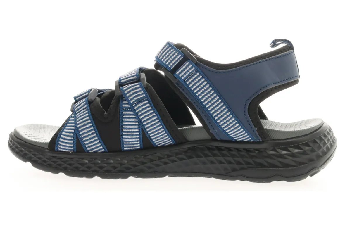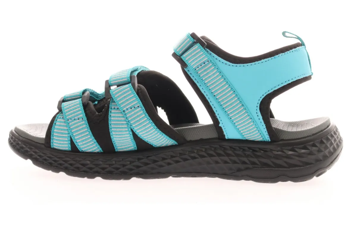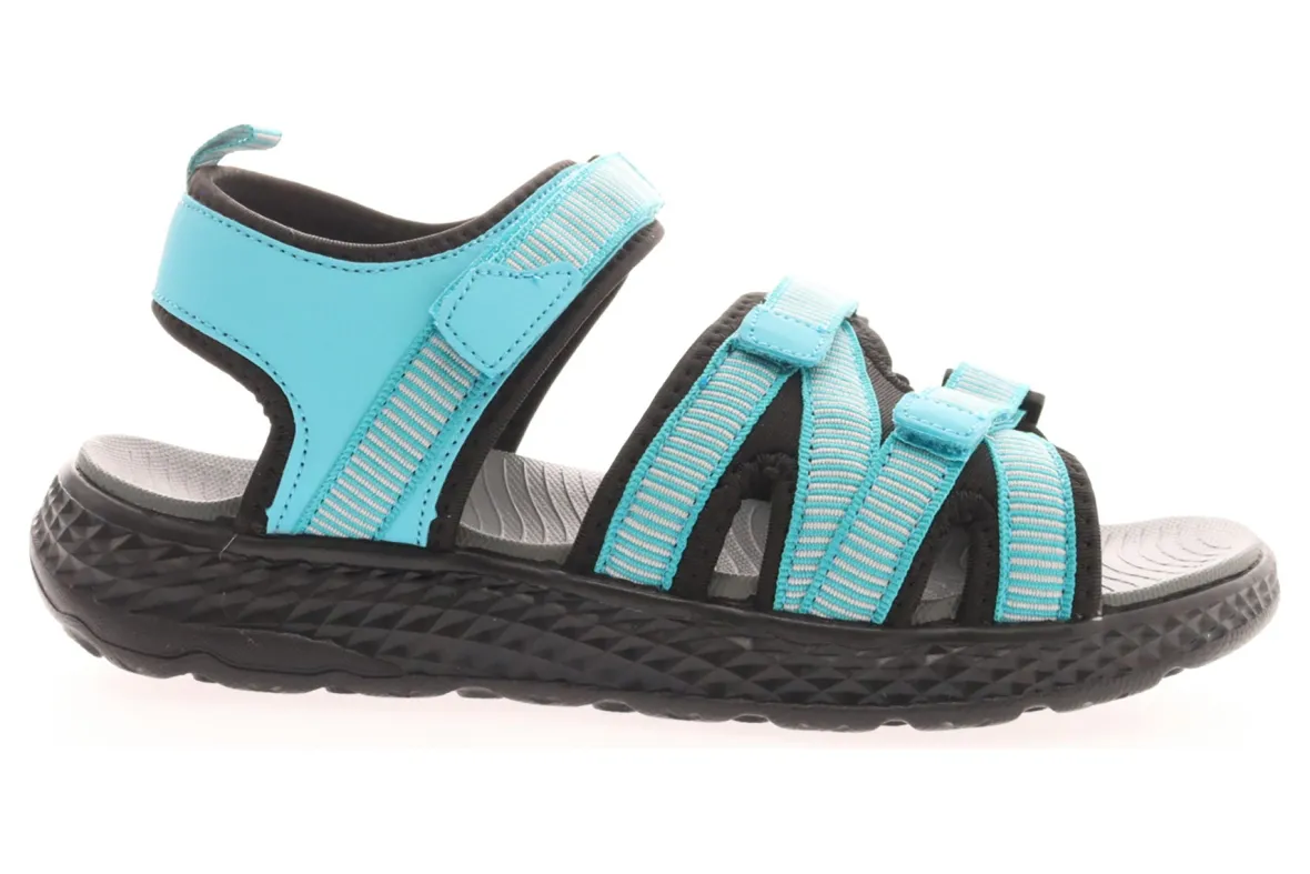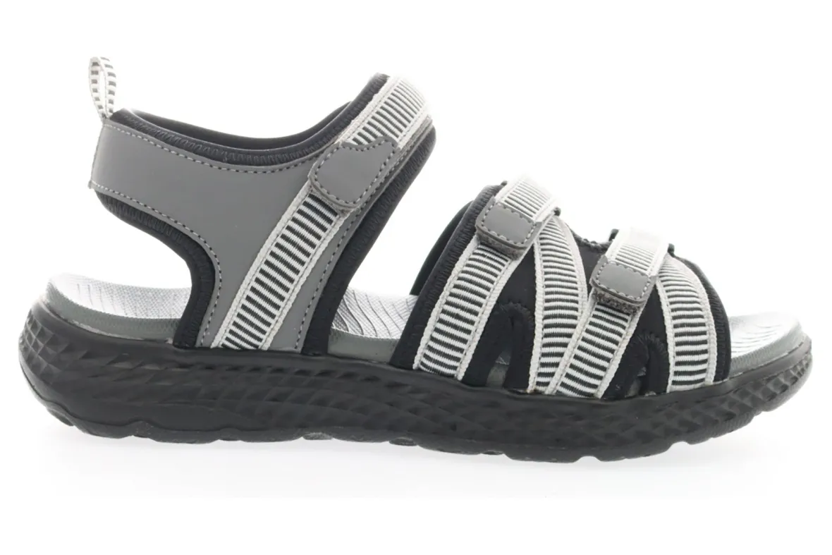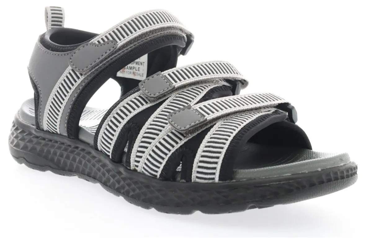 Lightweight strappy walking sandal with neoprene lined PU straps, adjustable at the instep and forefoot. Cushioning EVA …