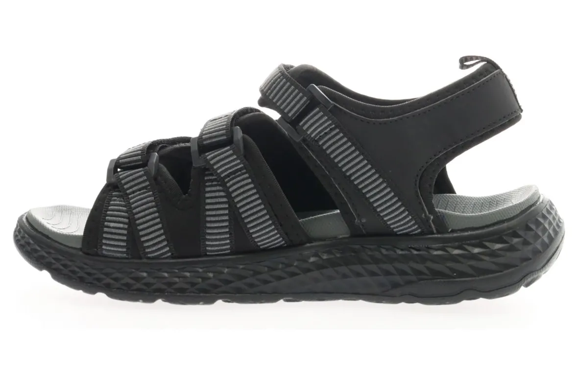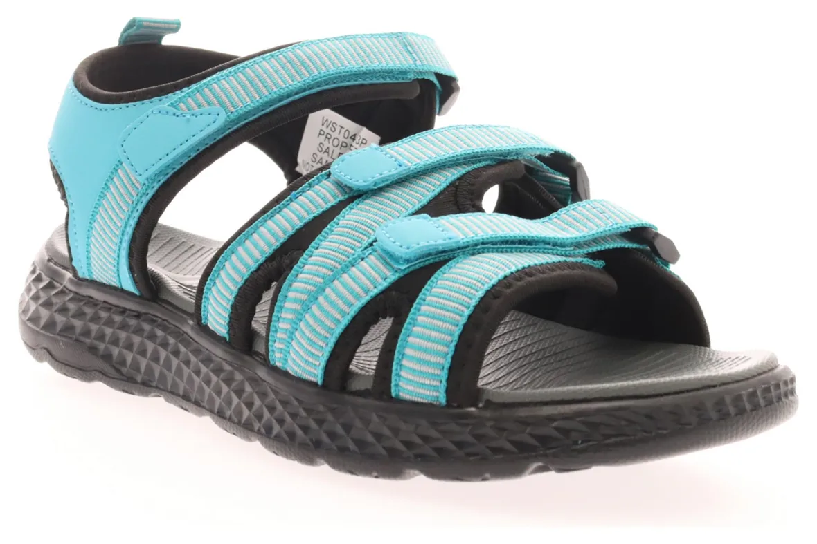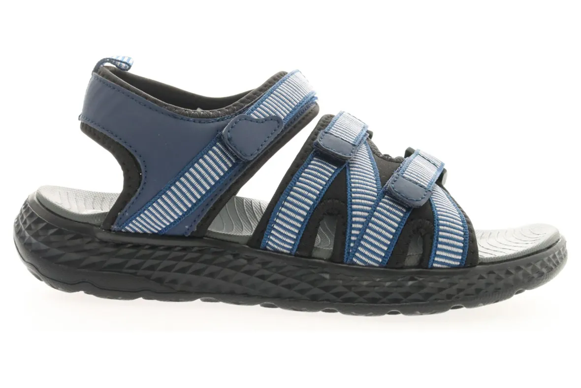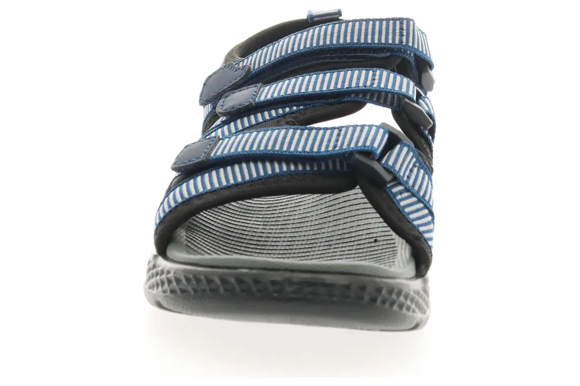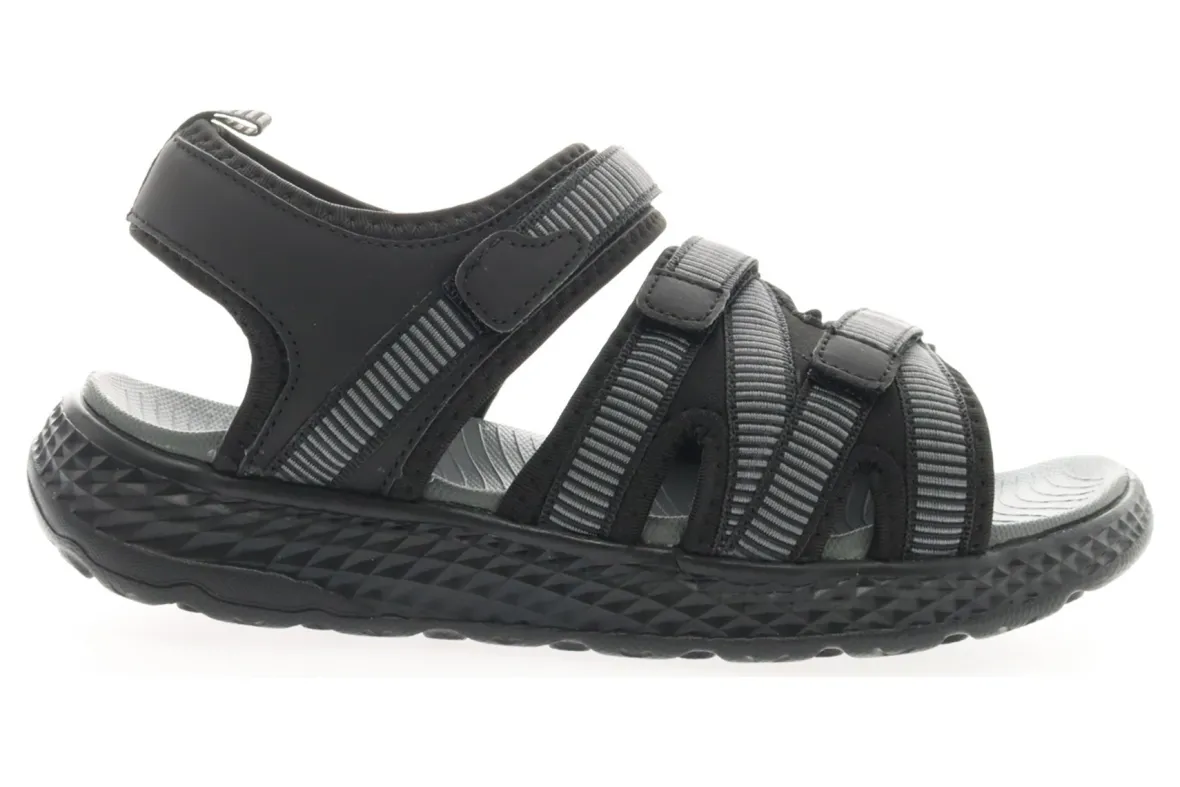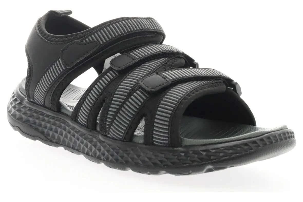 Lightweight strappy walking sandal with neoprene lined PU straps, adjustable at the instep and forefoot. Cushioning EVA …