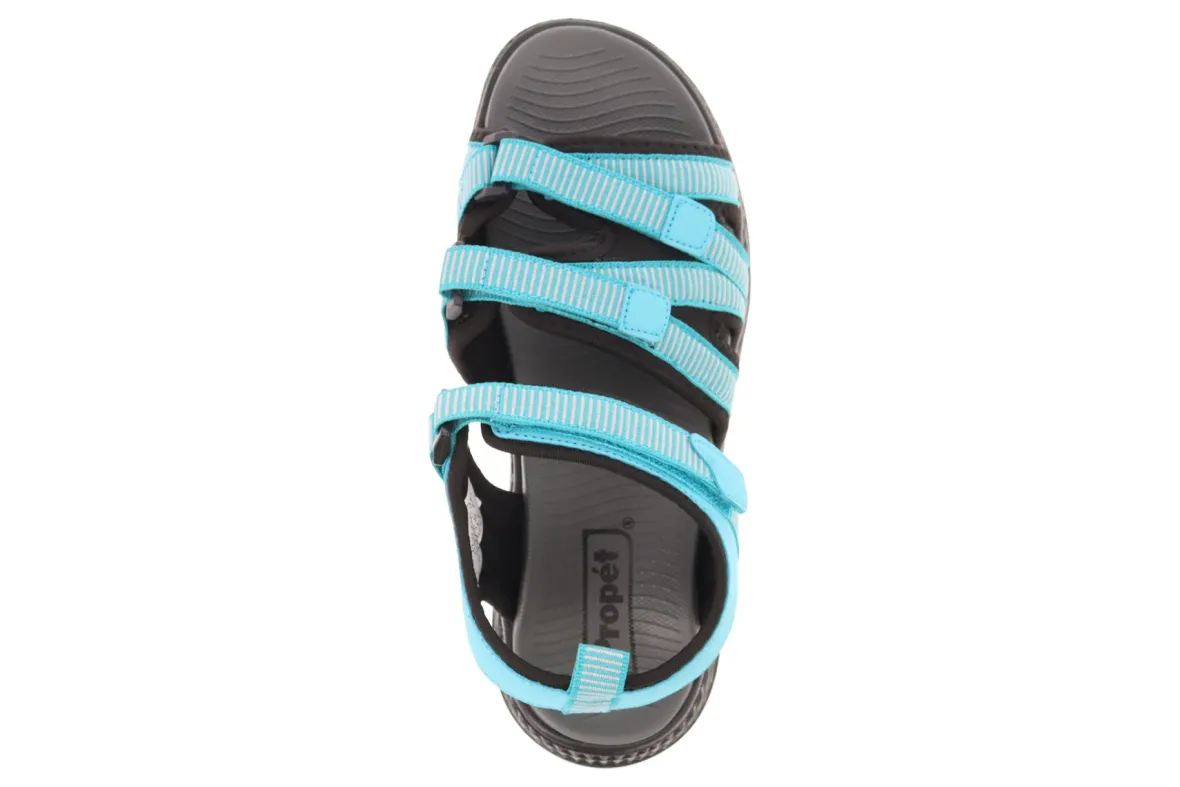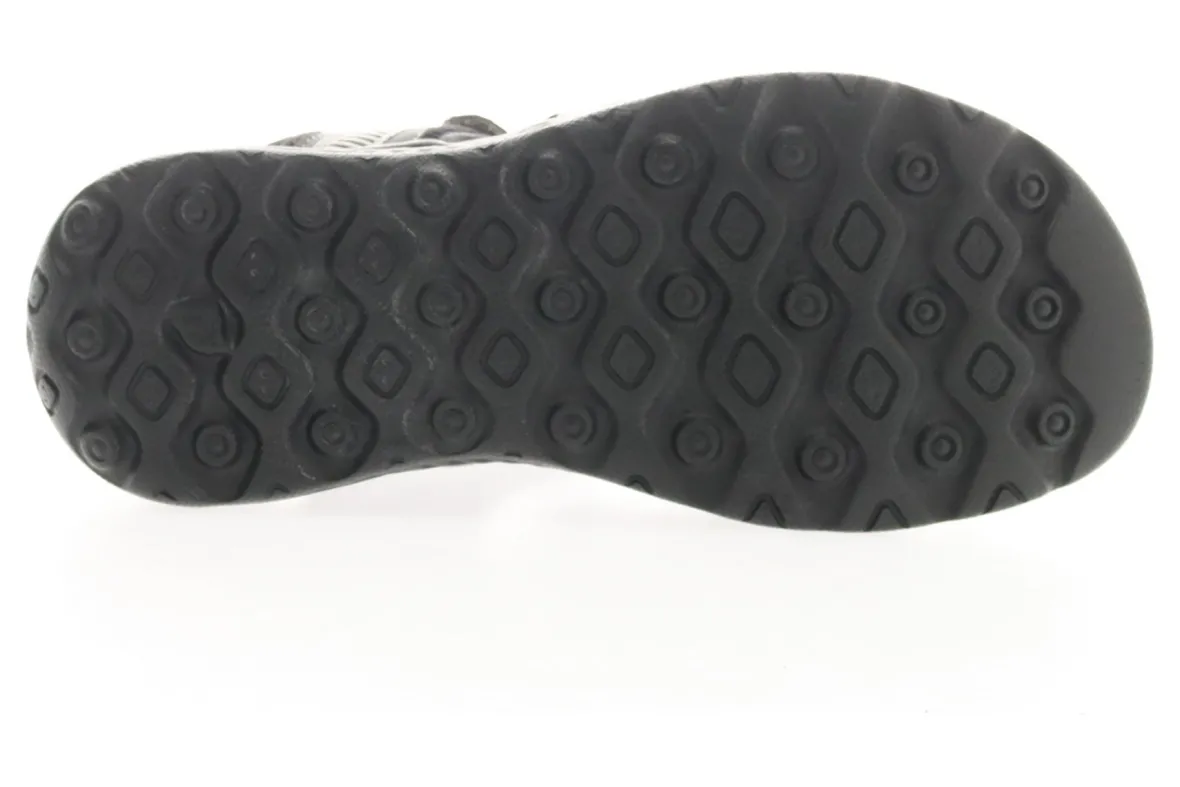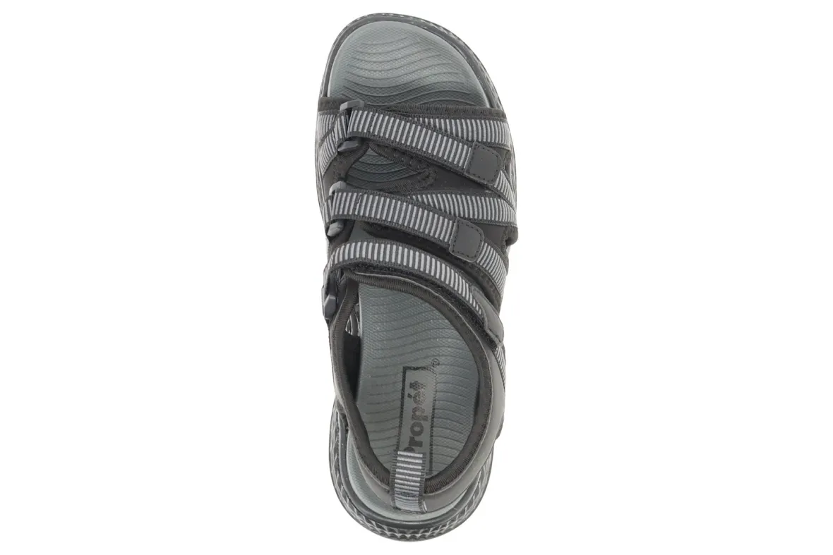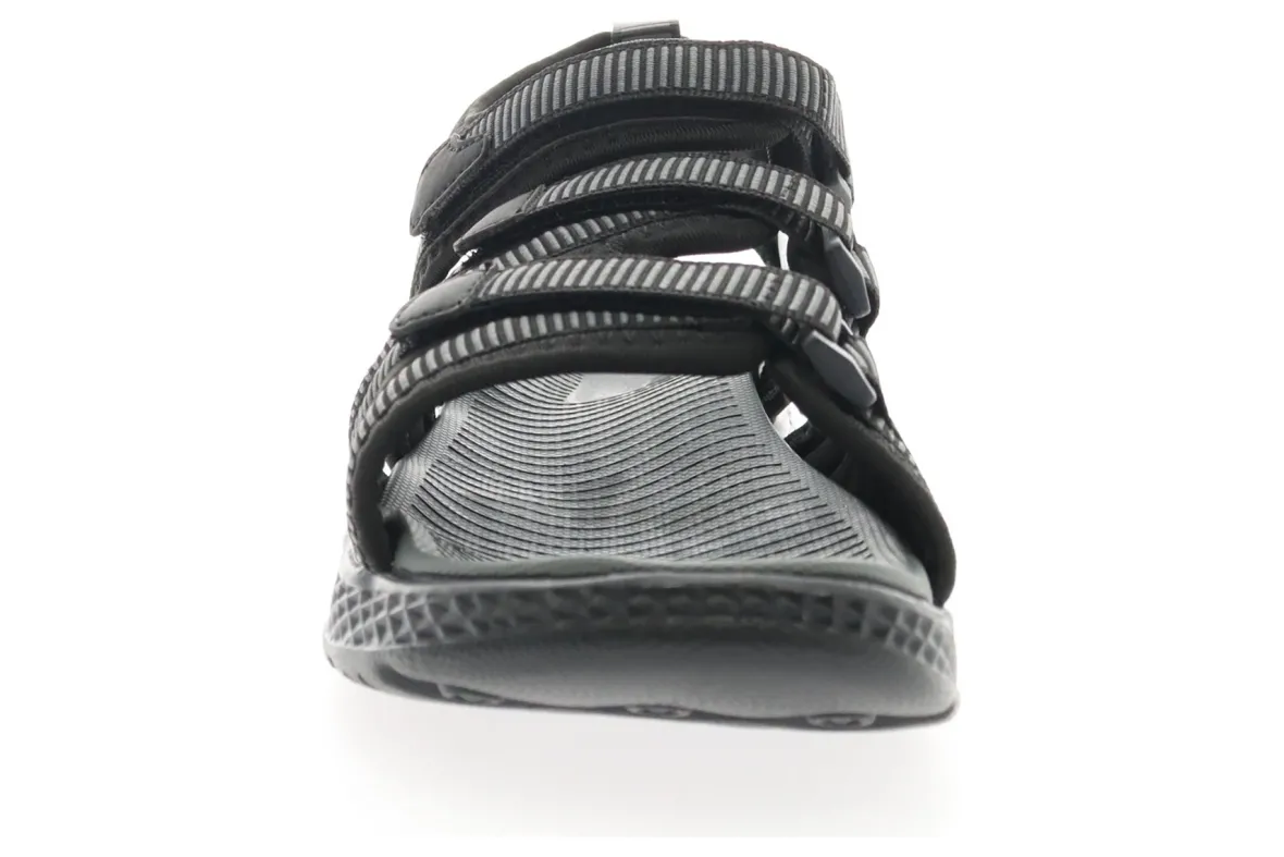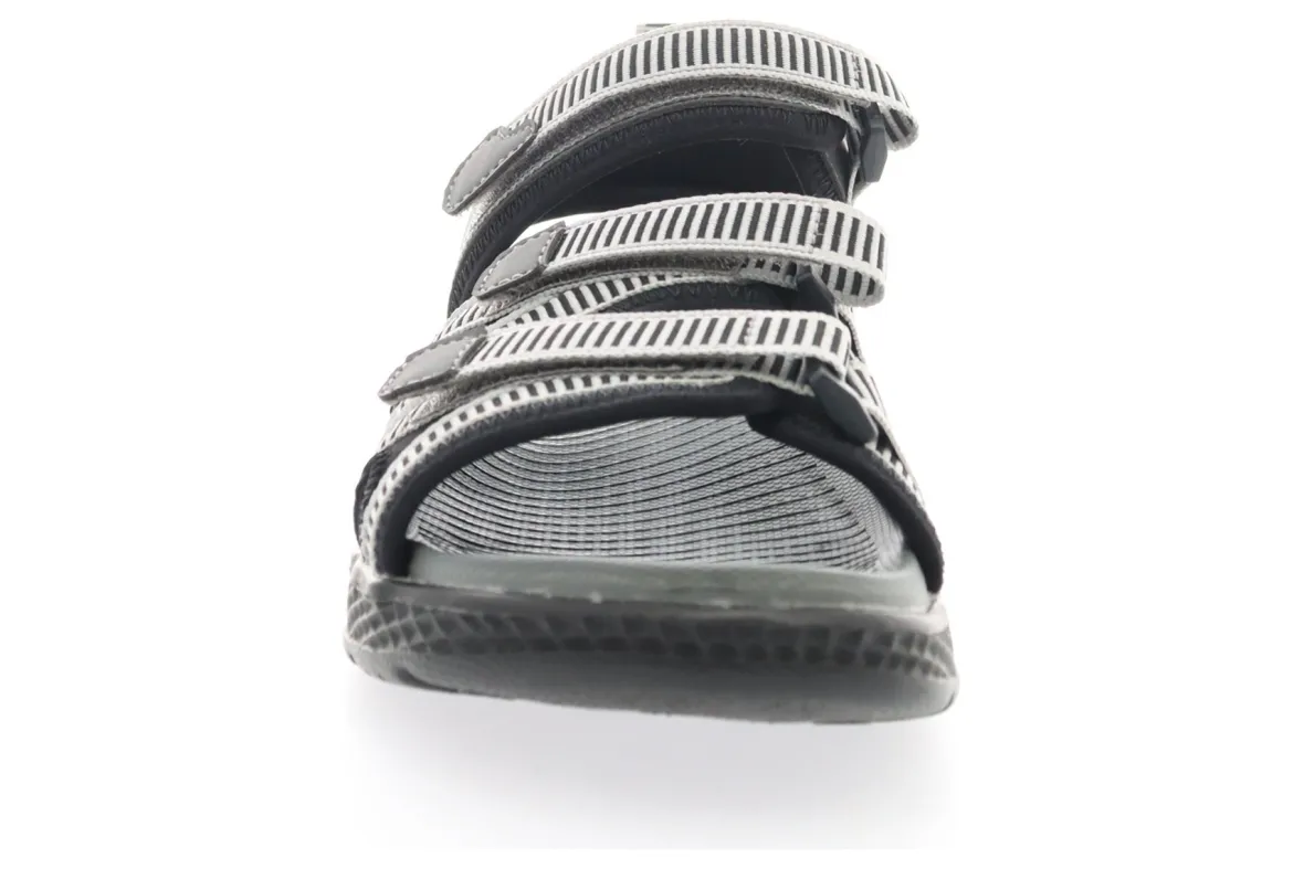 Lightweight strappy walking sandal with neoprene lined PU straps, adjustable at the instep and forefoot. Cushioning EVA …