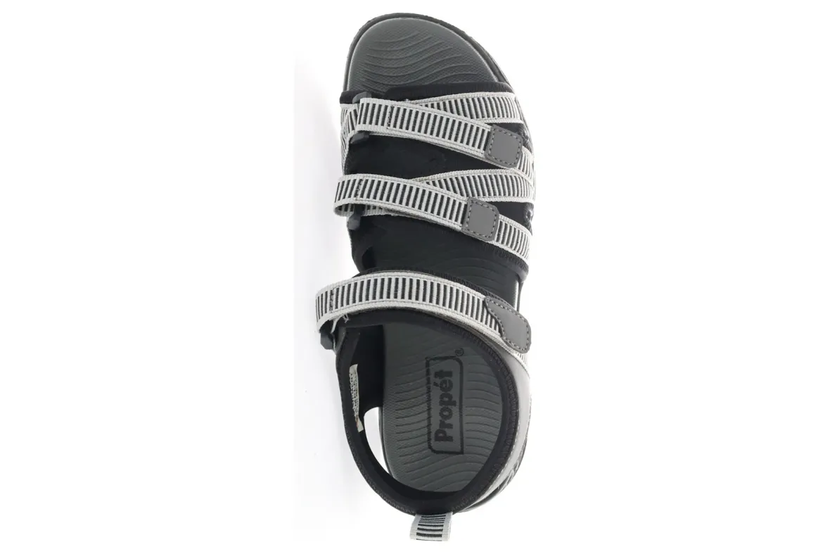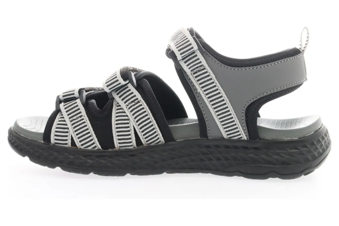 Lightweight strappy walking sandal with neoprene lined PU straps, adjustable at the instep and forefoot. Cushioning EVA footbed with microfiber lining offers all-day comfort. Lightweight outsole combines EVA and rubber for long-lasting wear and a deep tread pattern for traction.
