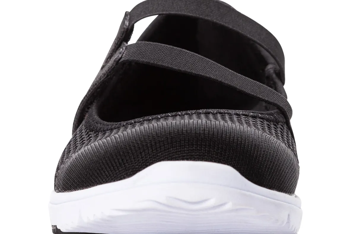 Propet TravelWalker Evo Mary Jane is a comfortable classic. These active sneakers have mesh uppers, removable footbed, EVA midsole and rubber insert outsole. An adjustable hook and loop strap, round toe and contrast accent lining helps these Mary Janes stand out.
