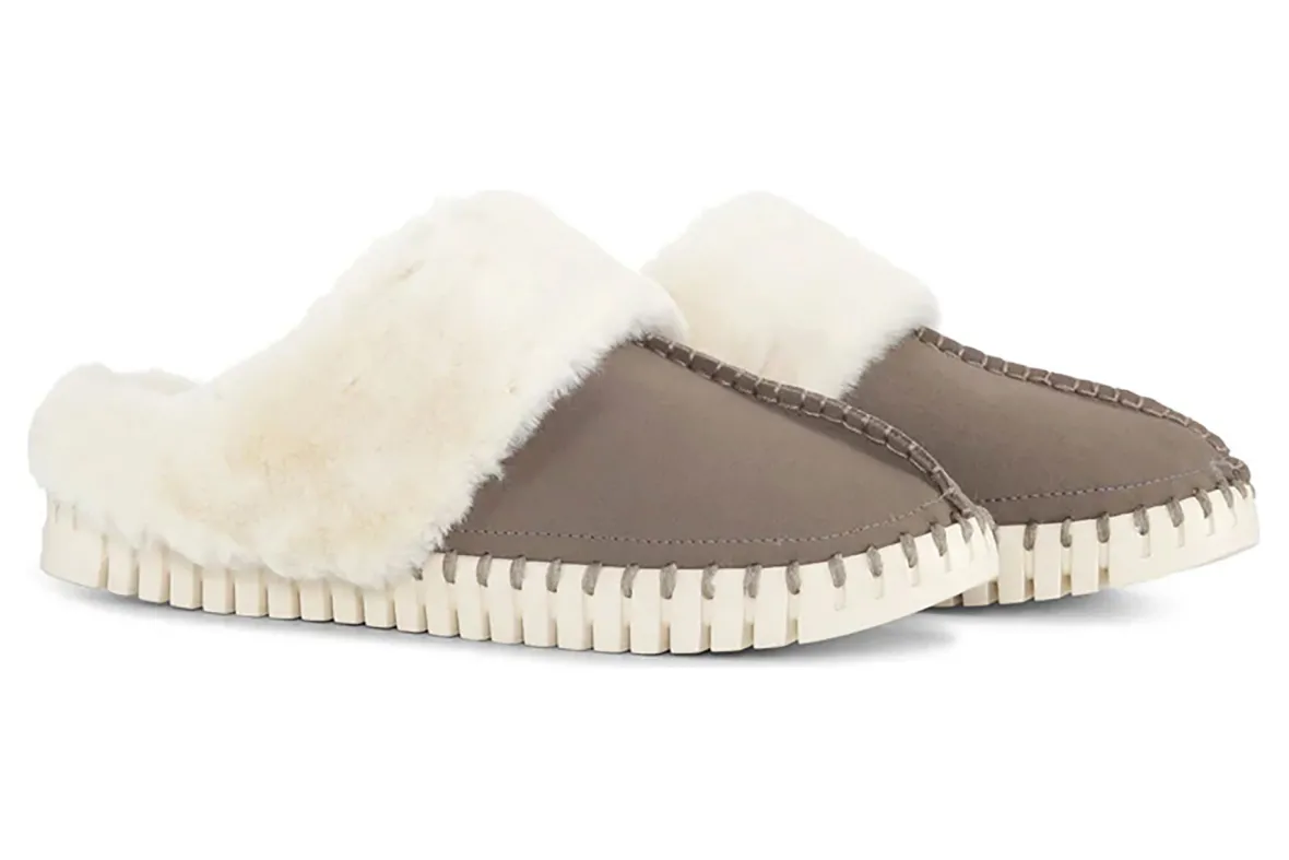 Ilse Jacobsen Tulip 3871 is a warm and cozy slipper. These stylish mules have recycled microfiber uppers, a soft faux fur lining and a durable outsole made with 75% natural rubber and 25% recycled rubber.