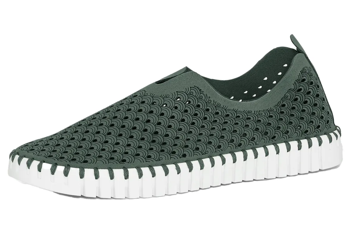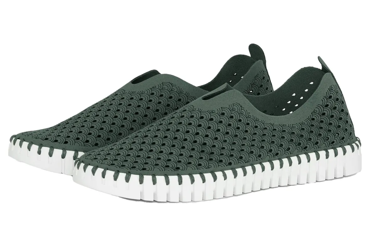 Ilse Jacobsen Tulip 139 is a lightweight and comfortable slip-on shoe. Prominent features include perforated recycled microfiber uppers, a removable insole and a sturdy and chunky outsole.