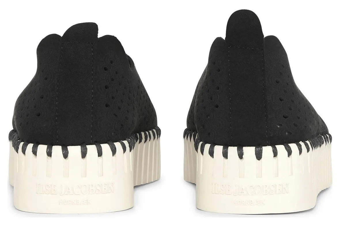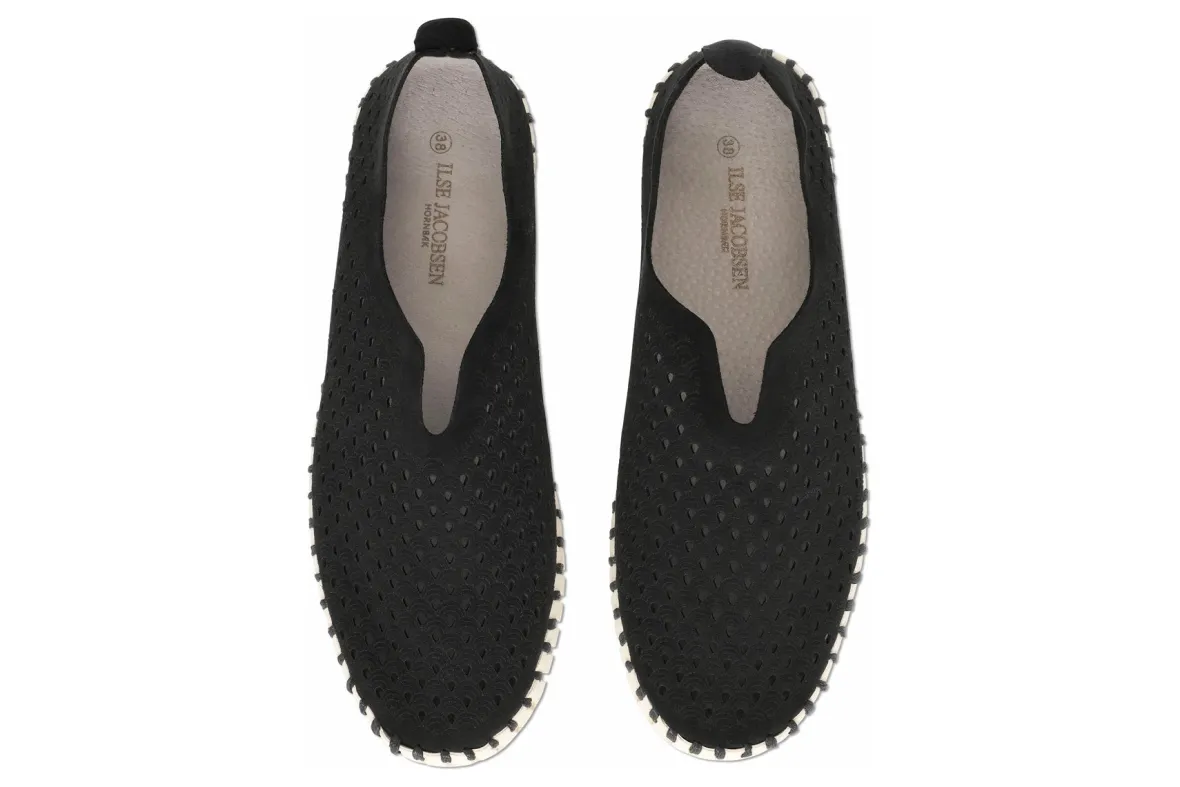 Lightweight shoe by Ilse Jacobsen is perfect for any occasion. The shoe is practical, very comfortable and has a great stylish appearance. Its flexible outsole made of natural rubber and breathable upper with a laser cut pattern makes it the perfect leisure and travel shoe. Crafted using intricate stitching (no glue) and recycled microfiber materials.