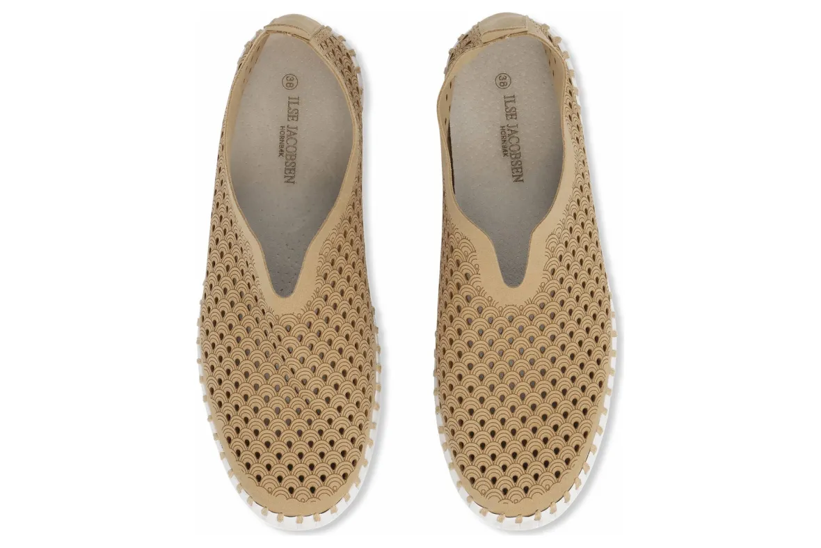 Lightweight shoe by Ilse Jacobsen is perfect for any occasion. The shoe is practical, very comfortable and has a great stylish appearance. Its flexible outsole made of natural rubber and breathable upper with a laser cut pattern makes it the perfect leisure and travel shoe. Crafted using intricate stitching (no glue) and recycled microfiber materials.