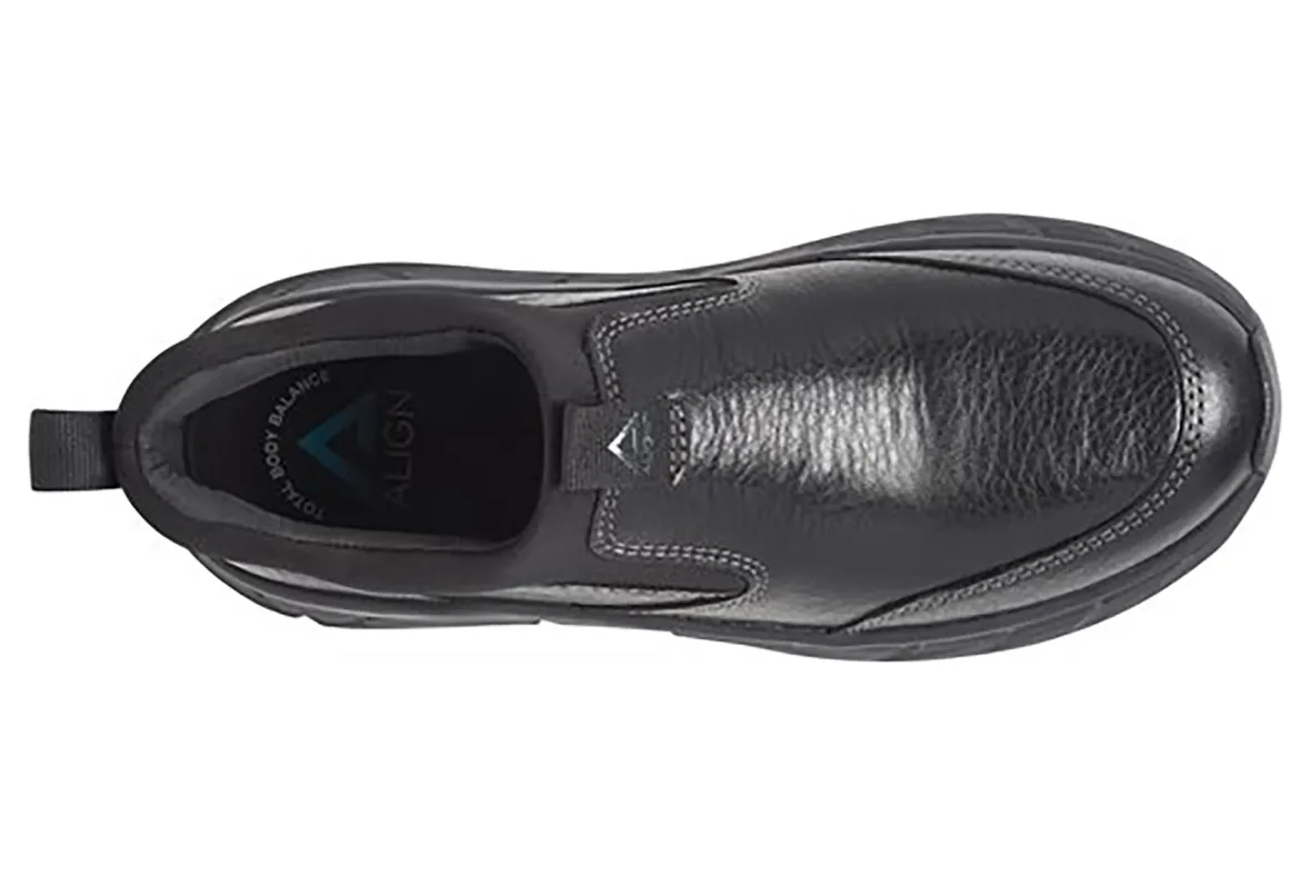 Rugged on-the-job performance in a convenient water-resistant slip-on with ground-gripping traction. The Valent work shoe from Align’s ProTech series combines waterproof leathers and a seam-sealed design to help keep feet dry, while its high-traction tech outsole delivers maximum slip resistance on wet and dry surfaces so you can work with confidence. Inside the shoe, the innovative Align™ orthotic insole is designed to place the foot in a more optimum position to assist with proper alignment, stability, and support, reducing pressure on tendons, joints, and muscles.