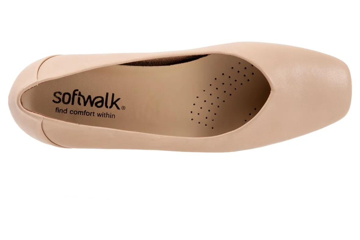 Softwalk Vellore is a modern square toe slip on with a mini-wedge sole and premium leathers. The sole is flexible with a sure-grip and the removable footbed is cushioned for comfort.