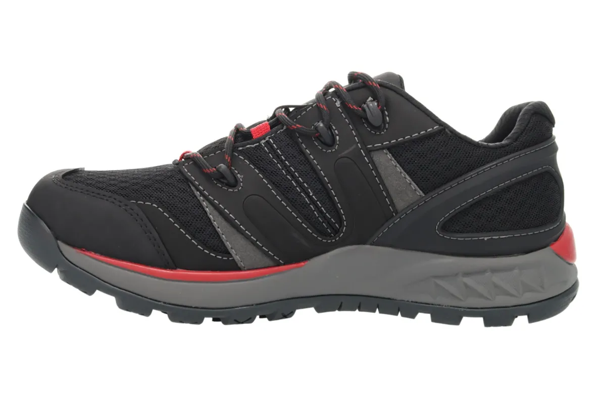 Waterproof bootie construction inside a suede Nubuck and mesh upper with padded collar and tongue and abrasion-resistant rubber toe cap. OrthoLite® X40 sets the industry standard for high rebound performance with an elasticity rating of over 40%. EVA midsole with a high traction rubber outsole and toe guard for durable outdoor wear.