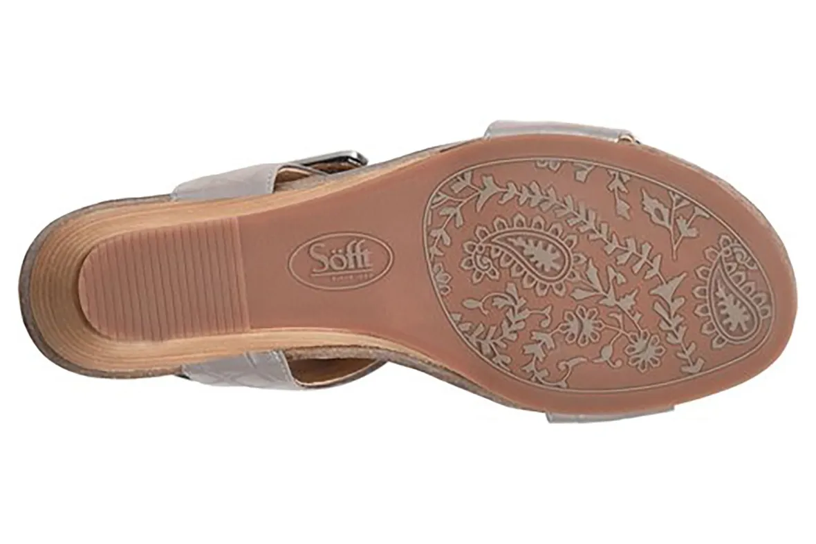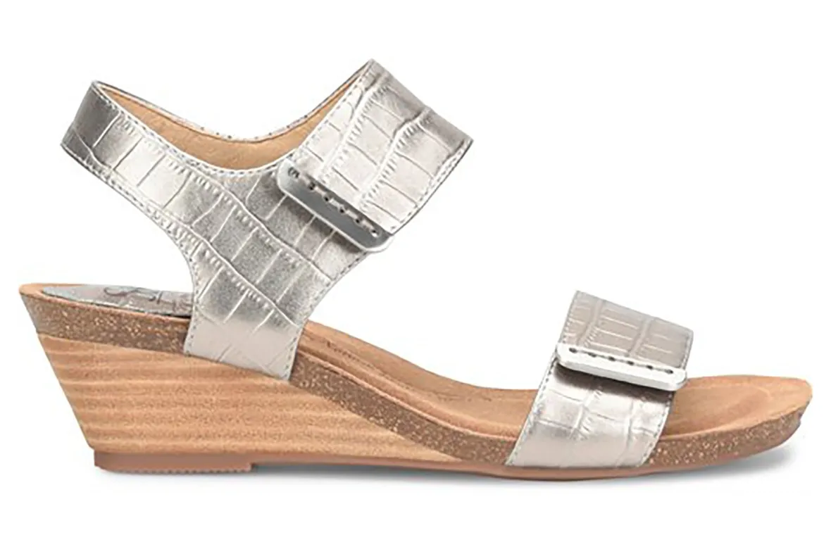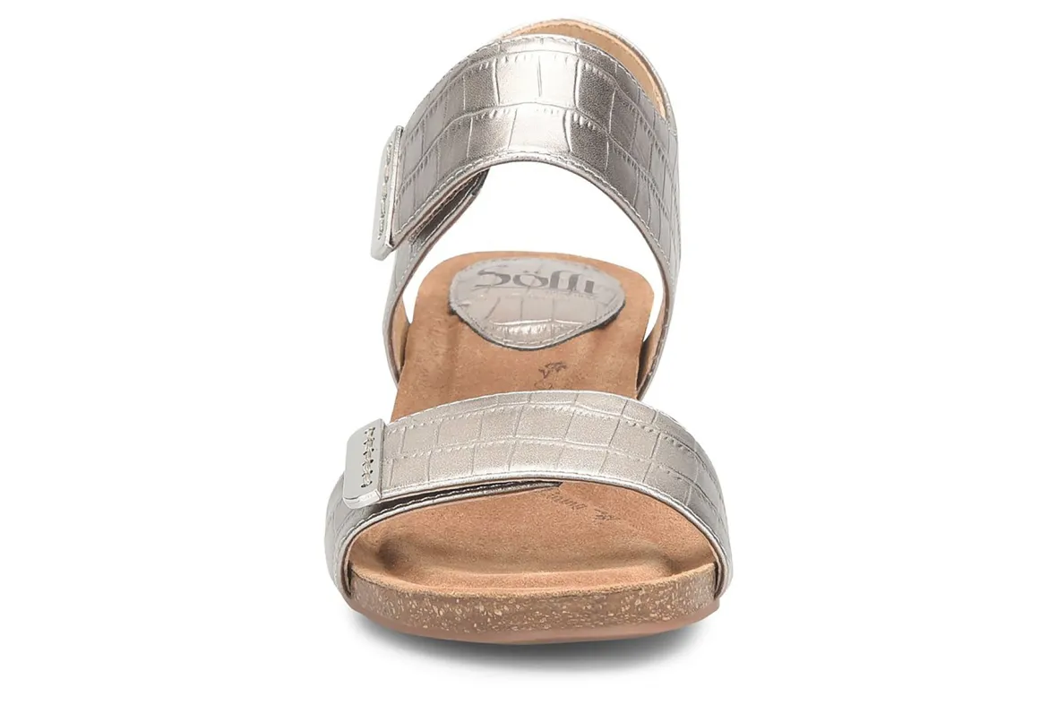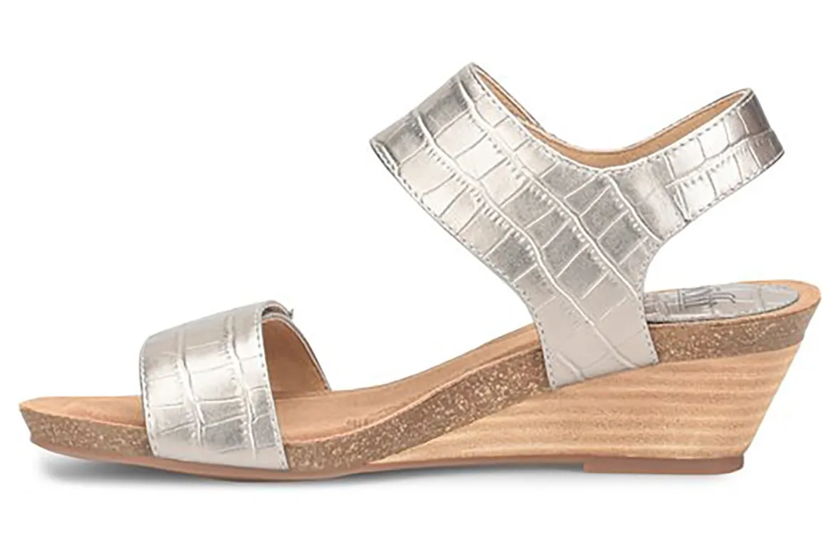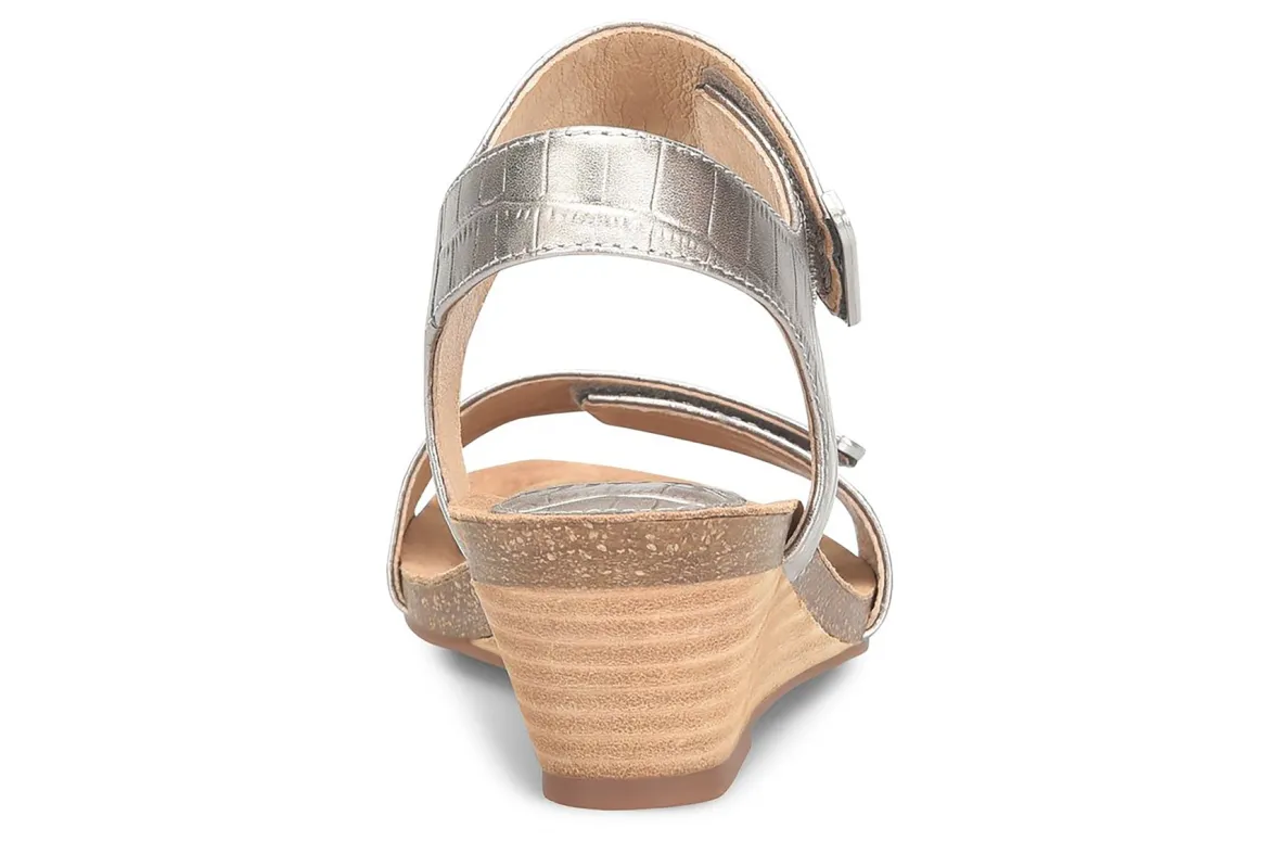 Sofft Verdi is a versatile wedge sandal focused on comfort. Enjoy a soft Italian leather upper, shock-absorbing cork midsole and 2 ¼ inch stacked wedge heel. Adjustable hook and loop straps and sturdy CPE outsole provides support and flexibility all day and night.