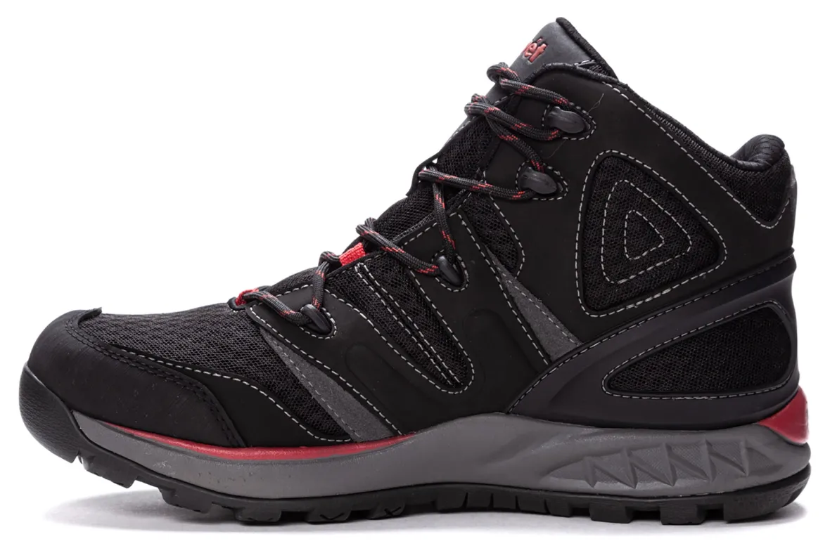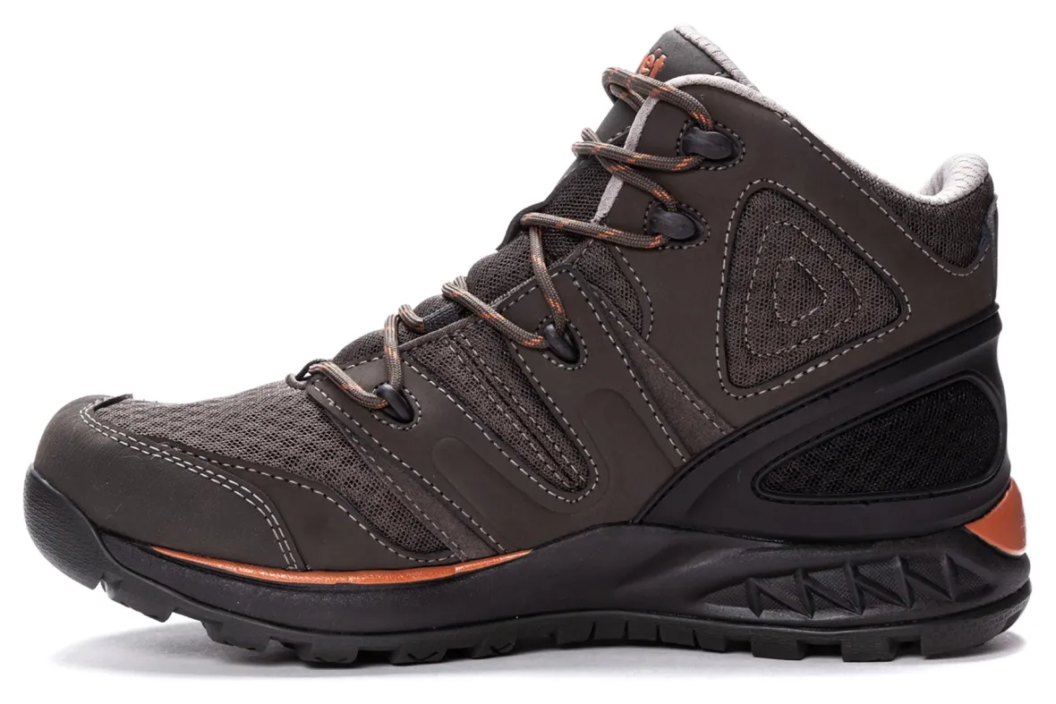 Waterproof bootie construction inside a suede Nubuck and mesh upper with padded collar and tongue and abrasion-resistant rubber toe cap. OrthoLite® X40? sets the industry standard for high rebound performance with an elasticity rating of over 40%. EVA midsole with a high traction rubber outsole and toe guard for durable outdoor wear.