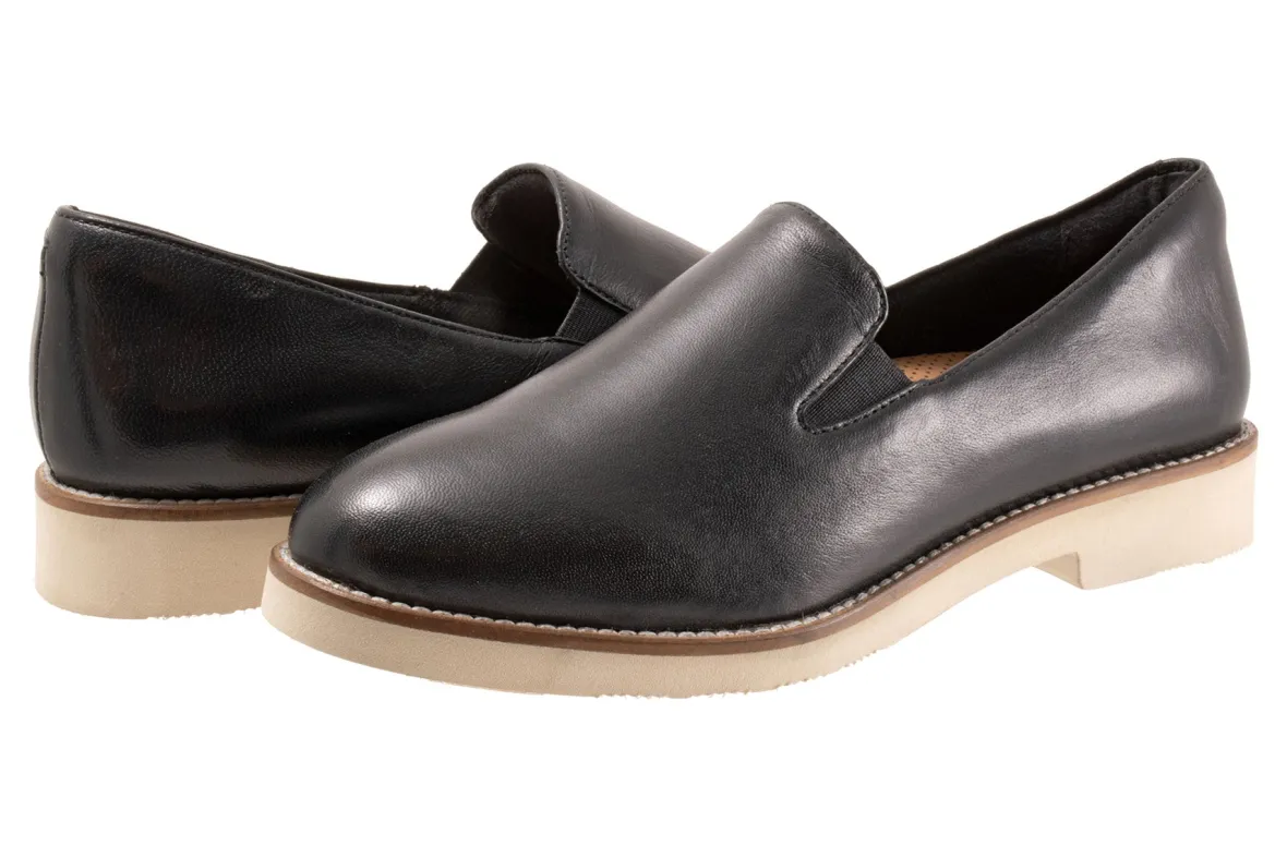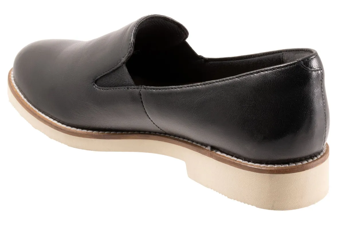 Softwalk Whistle II is a chic and comfortable slip-on flat. Prominent features include leather uppers, elastic goring, r…