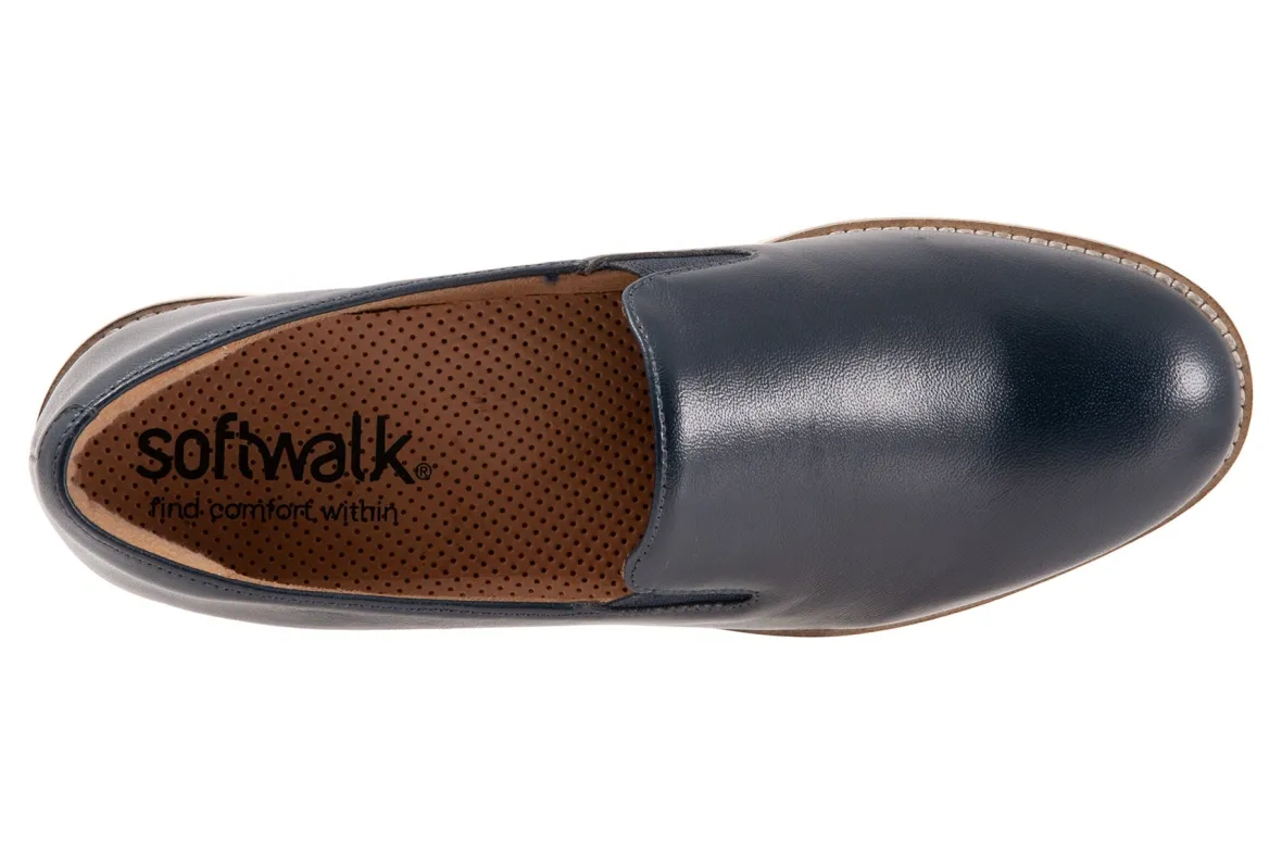 Softwalk Whistle II is a chic and comfortable slip-on flat. Prominent features include leather uppers, elastic goring, removable PU footbed and EVA outsole. A cushioned insole, round-toe silhouette and 1-inch heel height will make these flats a new favorite.